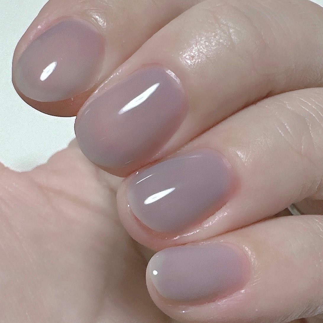 ルナソルのEX50はラベンダーベースに青パールが強く光る、氷のようなひんやりカラーです。 ベースにスキューズミーのシアーラベンダーを塗り、EX50を2度塗りしてもイエローラインが分かる透け感です。 Vartはecnueとしてリニューアルしましたね! GINKAも再登場してほしいカラーの1つです🩵 煌めく冬ネイル