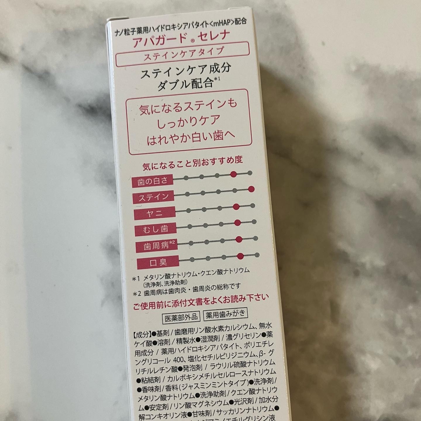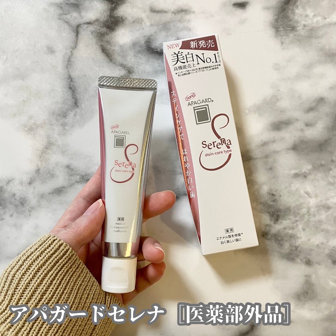 商品提供いただいて使ってみました。アパガードセレナ♡コーヒー、紅茶、ワインなどのステインをしっかりケアしてくれる薬用歯みがきです!サンギ開発のむし歯予防成分「薬用ハイドロキシアパタイト」を配合。歯とほぼ同じ成分(歯のエナメル質の97%はハイド...