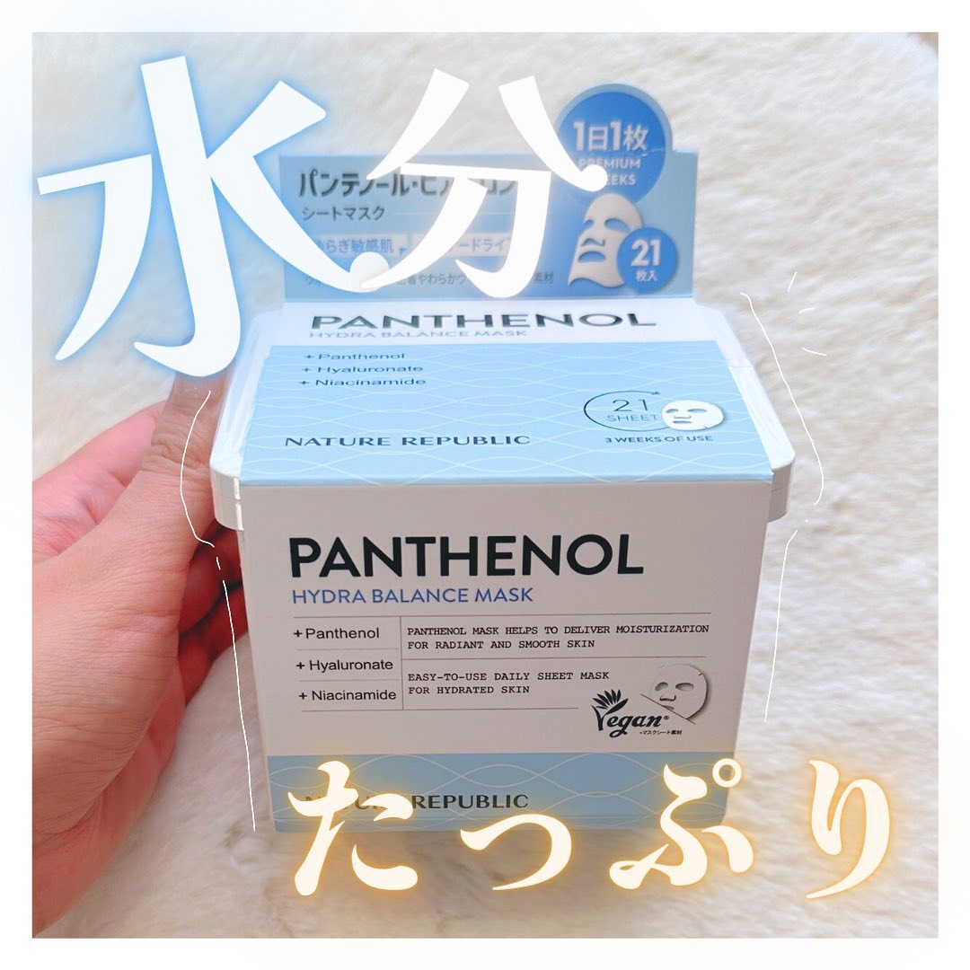 ネイチャーリパブリックキューブマスクパンテノールパンテノールと8種類のヒアルロン酸を配合したフェイスマスク。パンテノールは肌に浸透しやすく、保湿効果や抗炎症作用、修復作用などをもちます。アルコールフリー、パラベンフリー、ミネラルオイルフリー、...