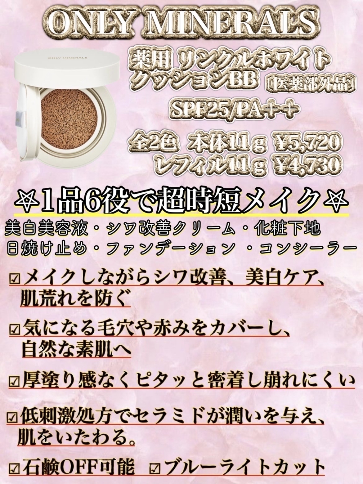 商品詳細情報ONLY MINERALS 薬用 リンクルホワイト クッションBB