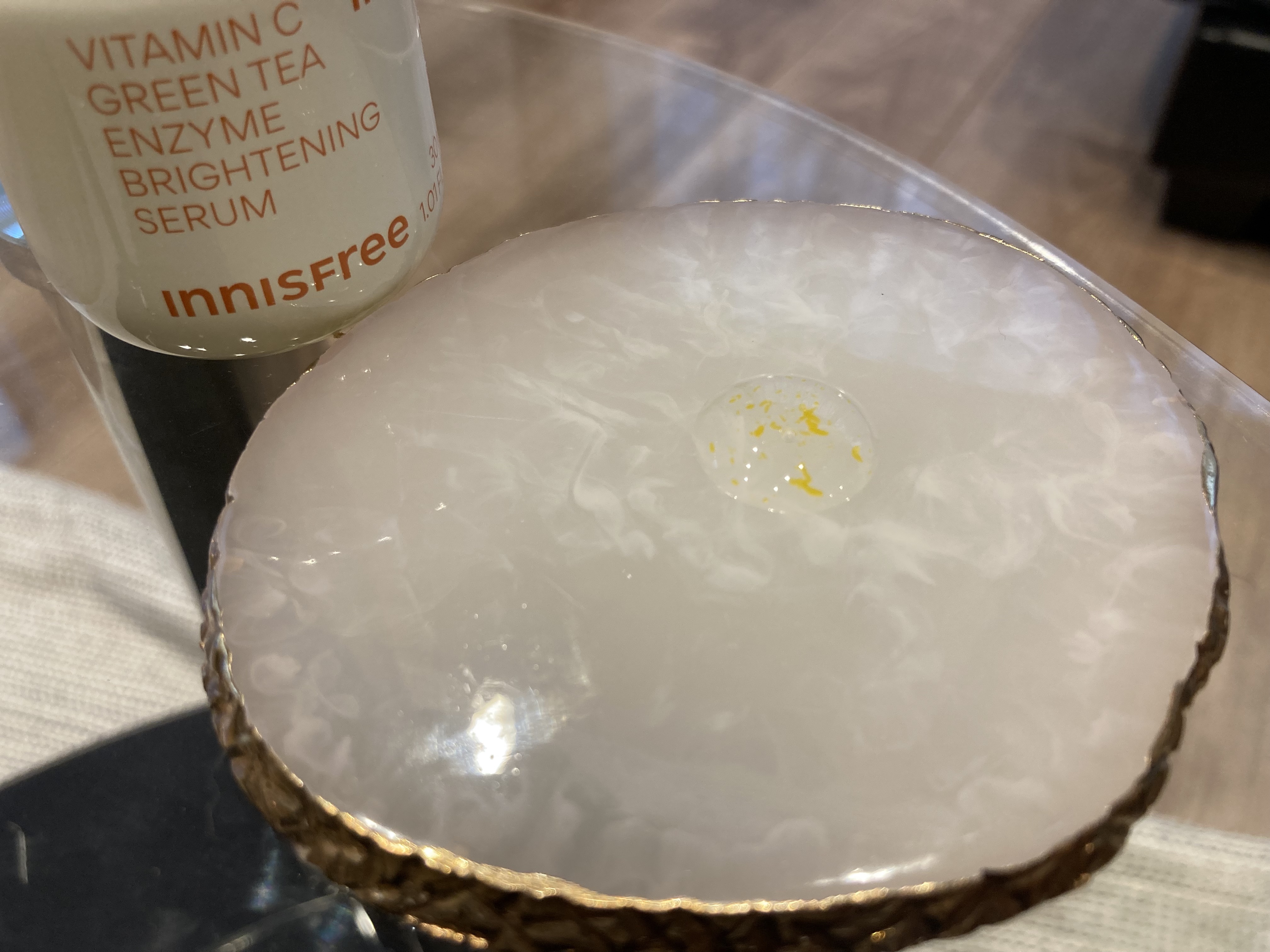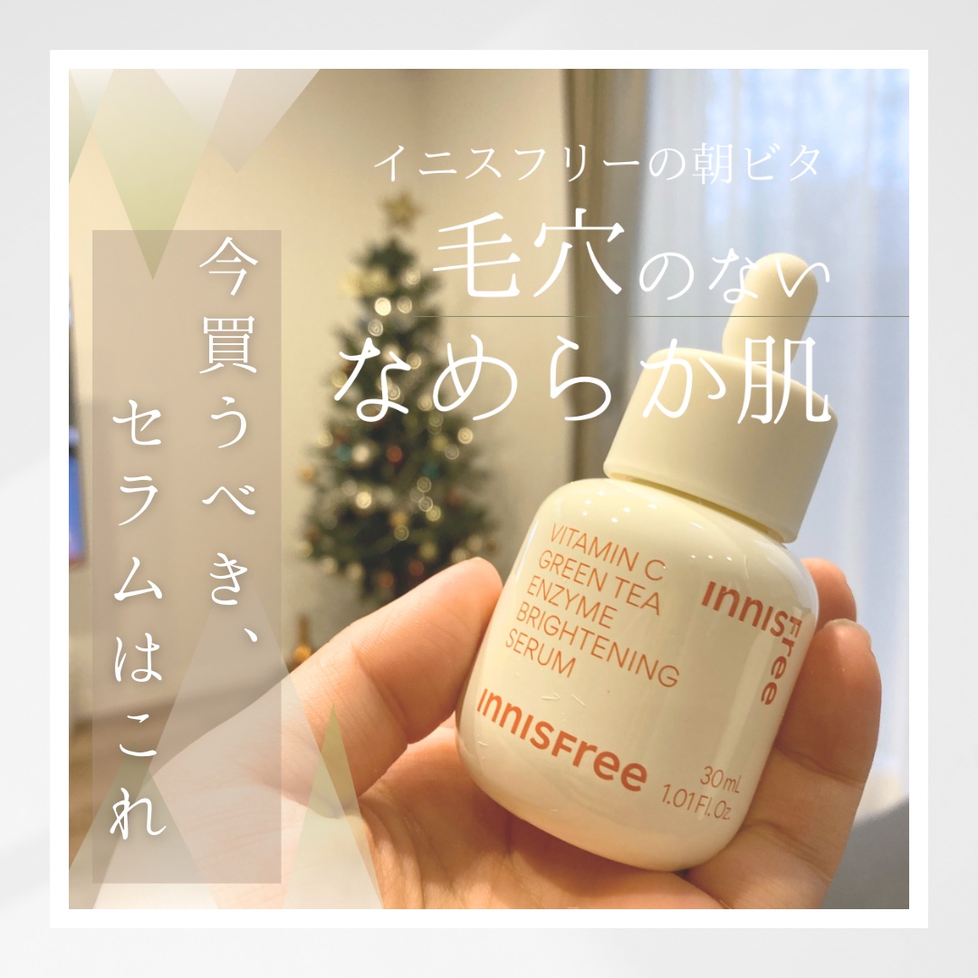 緑茶酵素×ビタミンC(イニスフリーオリジナル処方)で角質ケアをしたなめらかな肌にWビタミンCが浸透してワンランク上の透明感を叶える! トロッとしたテクスチャーで伸びが凄く良いのと敏感肌でも特に刺激を感じずに使用できる所がGood☺︎☺︎ 赤みが強い跡は少しずつ小さくなっていますし茶色がかった跡は少しずつ薄くなっている気がしてます!!