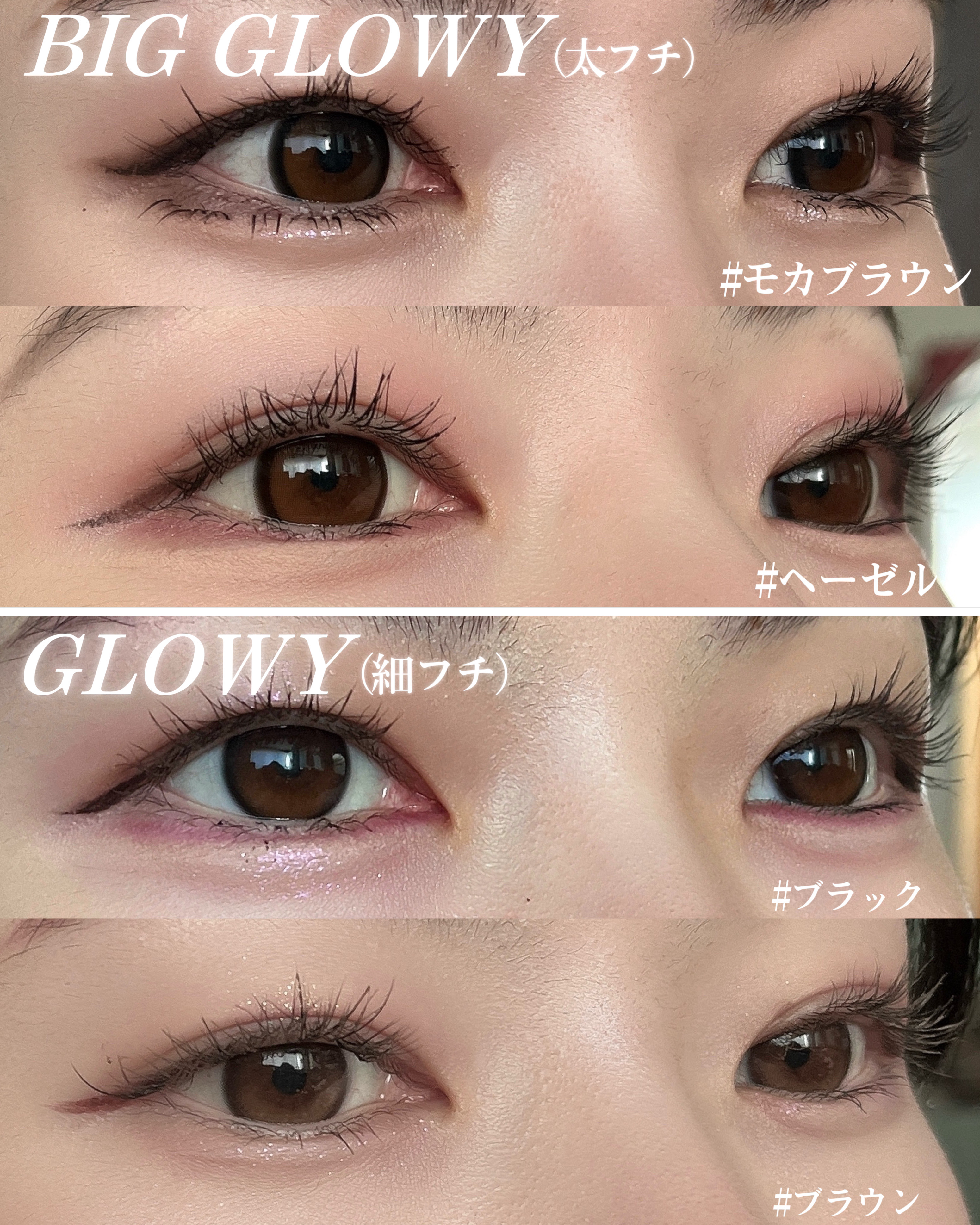 𝙾𝙻𝙴𝙽𝚂ブラウン系水光カラコン3種類比較♡◾︎GlowyNatural(Color:LatteBrown)⇨ナチュラル・デイリー向きな きゅるきゅるとしたナチュラル水光カラコン♡◾︎Glowy(Color:Brown)⇨ツヤツヤ水光カラコン...