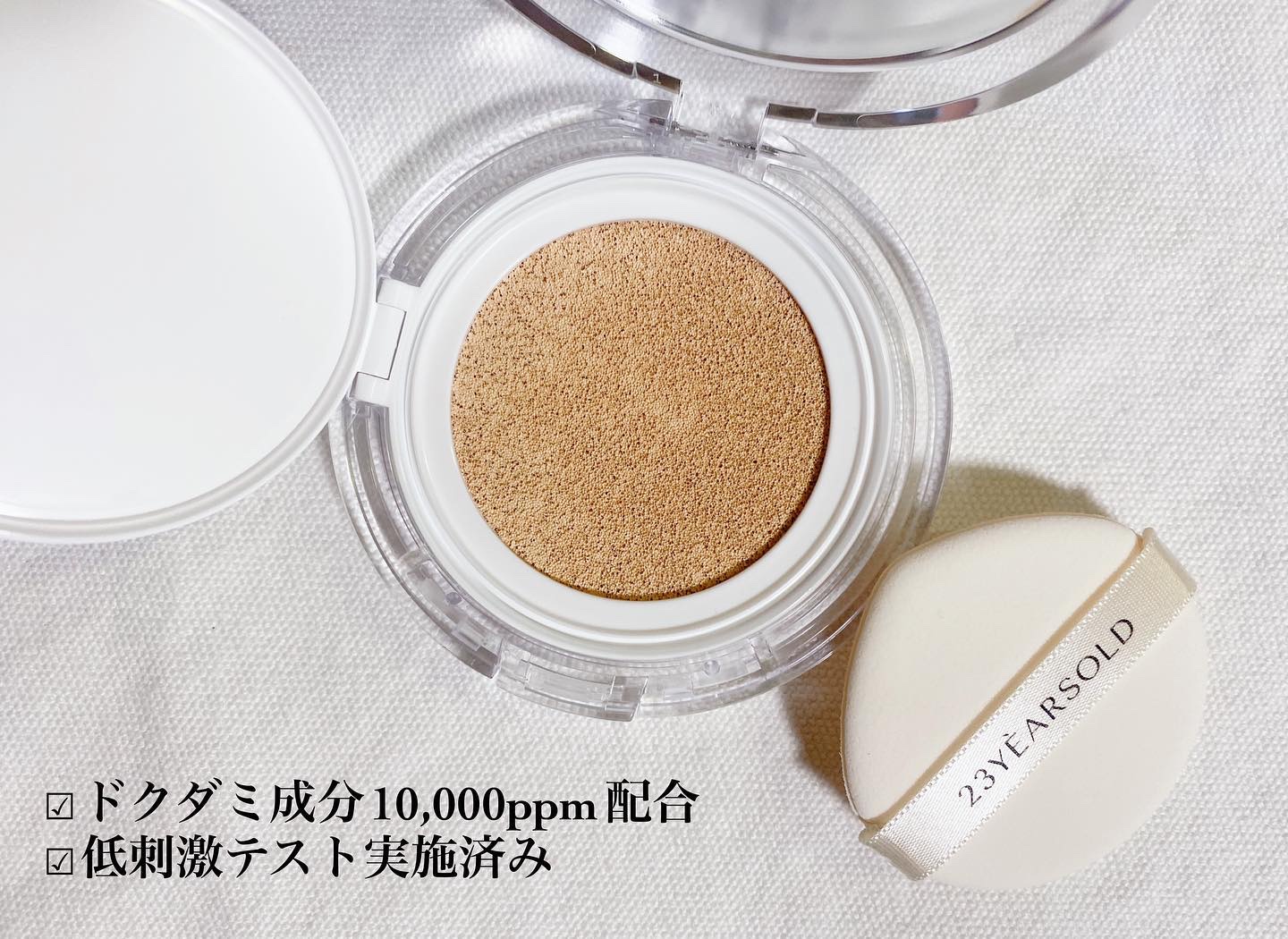 - <21 マシュマロベージュ> 水、シクロペンタシロキサン、酸化チタン、メトキシケイヒ酸エチルヘキシル、サリチル酸オクチル、BG、メチルトリメチコン、イソドデカン、ナイアシンアミ ド、ラウリルポリグリセリル-3ポリジメチルシロキシエチルジメチコン、サ リチル酸ブチルオクチル、オクトクリレン、酸化亜鉛、ポリリシノレイン酸ポリ グリセリル-3、トリメチルシロキシケイ酸、ドクダミエキス、硫酸Mg、ポリ グリセリル-3ポリジメチルシロキシエチルジメチコン、クオタニウム-90ベ ントナイト、(カプリル酸/カプリン酸)グリセリズ、シリカ、ポリメチルシルセ スキオキサン、(アクリレーツ/メタクリル酸ポリトリメチルシロキシ)コポリ マー、(トリメチルシロキシケイ酸/ジメチコノール)クロスポリマー、水酸化A 1、トリエトキシカプリリルシラン、リシノレイン酸ポリグリセリル-3, ステ アリン酸、アデノシン、プルラン、フルクトオリゴ糖、1,2-ヘキサンジオール、グリセリン、チャ葉エキス、トリ(カプリル/カプリン酸)グリセリル、ẞーグ ルカン、マルトデキストリン、コラーゲン、水添レシチン、レウコノストック/ダ イコン根発酵液、マスチック樹脂、ヒアルロン酸Na、ユビキノン、ティーツリ ーエキス、マデカッソシド、アシアチコシド、マデカシン酸、アシアチン酸、酸化 チタン (CI 77891)、CI 77492、CI 77491、CI 77499 <23 バターベージュ> 水、シクロペンタシロキサン、酸化チタン、メトキシケイヒ酸エチルヘキシル、サリチル酸オクチル、BG、メチルトリメチコン、イソドデカン、ナイアシンアミ ド、ラウリルポリグリセリル-3ポリジメチルシロキシエチルジメチコン、サ リチル酸ブチルオクチル、オクトクリレン、酸化亜鉛、ポリリシノレイン酸ポリ グリセリル-3、トリメチルシロキシケイ酸、ドクダミエキス、硫酸Mg、ポリ グリセリル-3ポリジメチルシロキシエチルジメチコン、クオタニウム-90ベ ントナイト、(カプリル酸/カプリン酸)グリセリズ、シリカ、ポリメチルシルセ スキオキサン、(アクリレーツ/メタクリル酸ポリトリメチルシロキシ)コポリ マー、(トリメチルシロキシケイ酸/ジメチコノール)クロスポリマー、水酸化A 1、トリエトキシカプリリルシラン、リシノレイン酸ポリグリセリル-3, ステ アリン酸、アデノシン、プルラン、フルクトオリゴ糖、1,2-ヘキサンジオール、グリセリン、チャ葉エキス、トリ(カプリル/カプリン酸)グリセリル、ẞーグ ルカン、マルトデキストリン、コラーゲン、水添レシチン、レウコノストック/ダ イコン根発酵液、マスチック樹脂、ヒアルロン酸Na、ユビキノン、ティーツリ ーエキス、マデカッソシド、アシアチコシド、マデカシン酸、アシアチン酸、酸化 チタン (CI 77891)、CI 77492、CI 77491、CI 77499