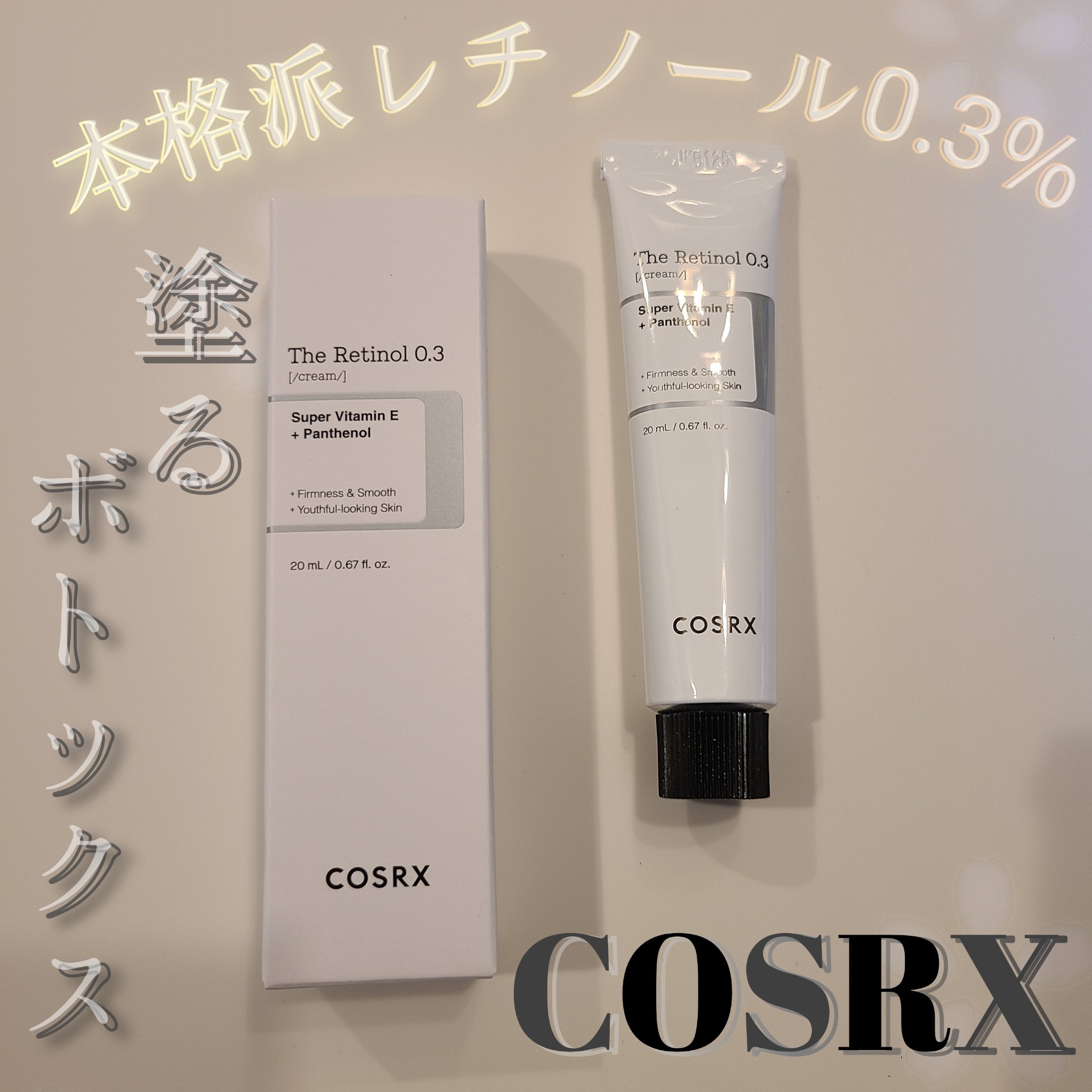 ■COSRXRXザ・レチノール0.3クリーム夜に高濃度ビタミンC美容液を使う日々に一区切りついたので夜レチ再開!冷蔵庫保管のスキンケアを片したいので再開早々に高濃度を投入する暴挙に出ました。以前LIPSで当選した0.1%クリームが良かったので...
