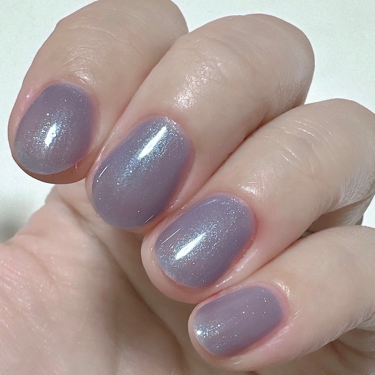 ポップアップが期間限定で開催されたので、行ってきちゃいました〜٩( ᐛ )و✨ クリアなベースに偏光ピンクにホロが煌めく可愛らしいダスティピンクカラー⑅* 小さなレインボーラメがチラチラと輝くライラックカラー。光に当たって柔らかい印象に。