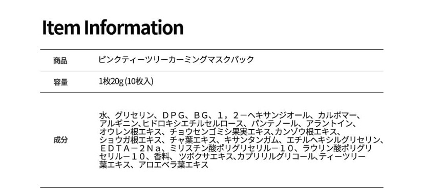 商品詳細情報APLIN ピンクティーツリーマスクパック