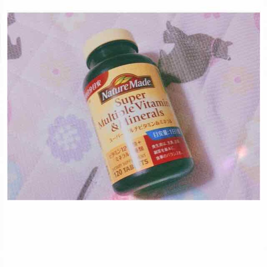ネイチャーメイドのスーパーマルチビタミン&ミネラルビタミン12種類+ミネラル7種類120日分入ってて1日1粒飲むだけなのでズボラさんにもオススメのサプリメントです✨お肌を綺麗にしたいならマルチビタミンがいいと聞いて飲み始めました😊目に見えた大...