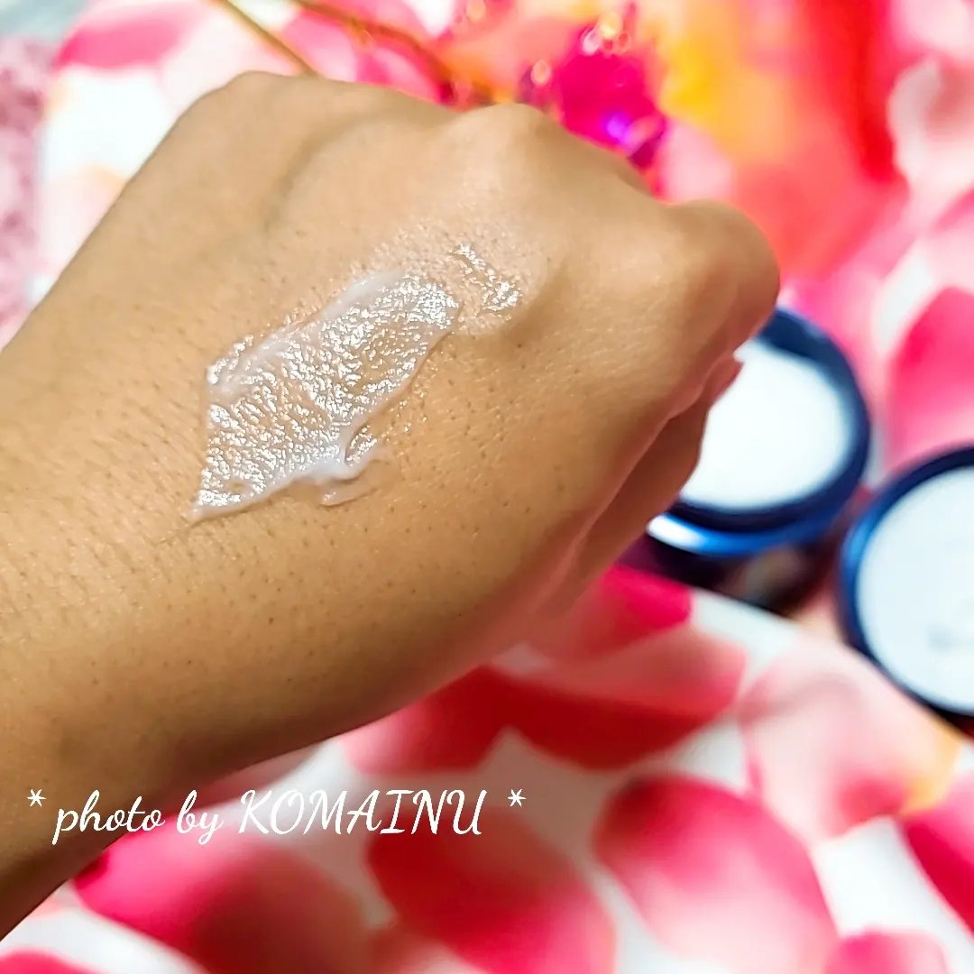 中身を開けると、ほんのり甘いフラワーノートの香り。これだけでもテンション上がっちゃうのに肌色補正の中に凄く細かなラメが沢山!塗り込んでいくとふんわり柔らかいテクスチャで顔全体が潤って覆われる感じがお気に入り♪ちなみにオールインワンジェル&化粧...