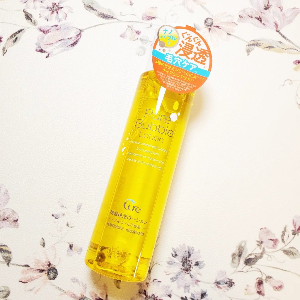 0.001mm以下のナノバブルで毛穴やくすみのケアをしてくれるCureのピュアバブルローション💛 ナノバブルと3つのビタミンCで毛穴ケアやくすみケアができる! 値段も2000円以下で手が出しやすく良い特徴ばかりなので、提供でいただいたけどとてもお気に入りの化粧水!👑