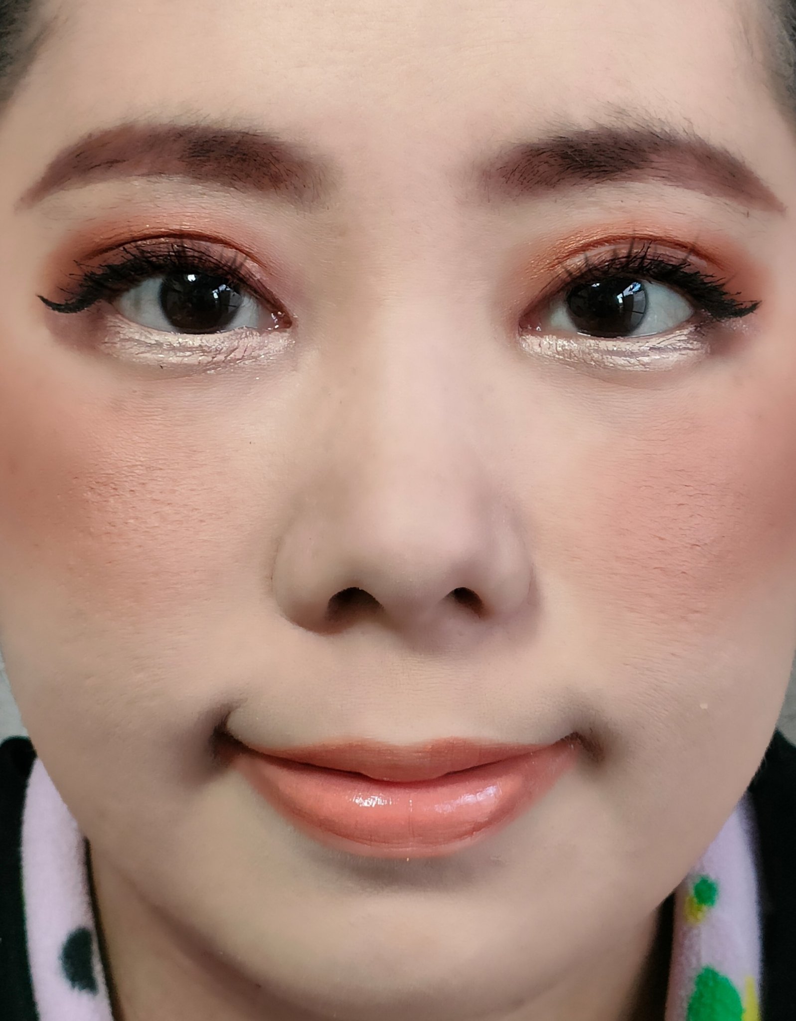 アリィー ニュアンスチェンジUV ジェル RSを、顔全体にまんべんなく塗ります。 RMK RMK ジェルクリーミィファンデーション 103を、顔全体にまんべんなく塗ります。 ジョンソンベビー ジョンソン ベビーパウダーを、顔全体にまんべんなく軽くはたきます。 THE BODY SHOP bronze shade warm glowを、両頬に塗ります。 KATE リフレクトミラーアイズ BR-1の締め色を、眉毛全体にまんべんなく塗ります。 URGLAM UR GLAMBLOOMING EYE COLOR PALETTE 01を、使用しました。 ちふれ リキッド アイライナー 筆ペンタイプ BK30 ブラックを、塗ります。 CEZANNE エアリーカールマスカラを、まつ毛全体にまんべんなく塗ります。 MAYBELLINE NEW YORK コロッサルボリュームエクスプレスを、まつ毛全体にまんべんなく塗ります。 MAYBELLINE NEW YORK SPステイ マットインク 135を、唇全体にまんべんなく塗ります。