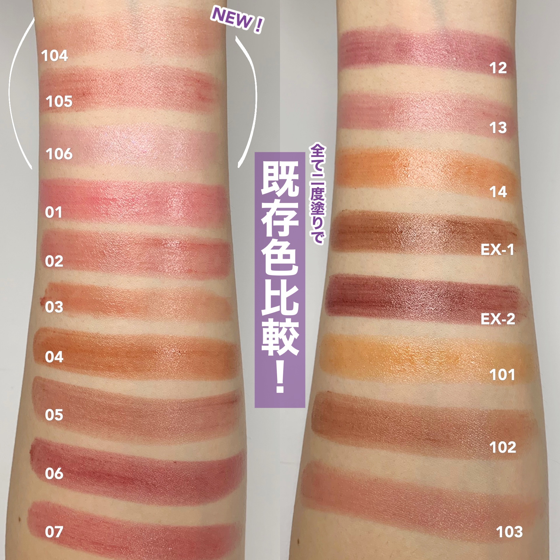 めっちゃくちゃ進化してるーーー😳😳😳 ブラシでも指でも取った瞬間の柔らかさが桁違いに良くなってる!!! ふわっとブレンドしやすくてボカしやすい!!! 05トフィーナッツラテはデイリー使いしやすい ナチュラル発色でかなり自然な仕上がり🥜 今っぽい色味で盛らずに陰影で盛る感じです💗 明度にしっかり差があって陰影をつけやすい◎ 06バニラティーラテはほろ苦ピンクメイクに🎀 05と比較するとかなり強い発色で スモーキーメイクに合いそうなパレット! パレット左から2番目のホワイトラメが ほんとに可愛くて透けるように光る感じ💎