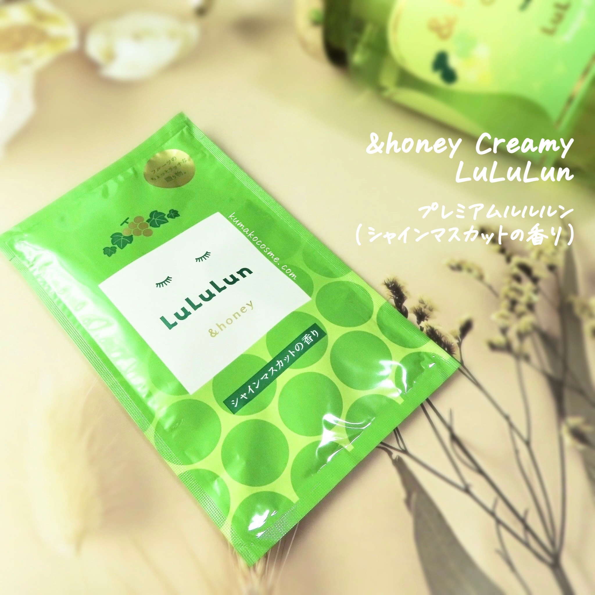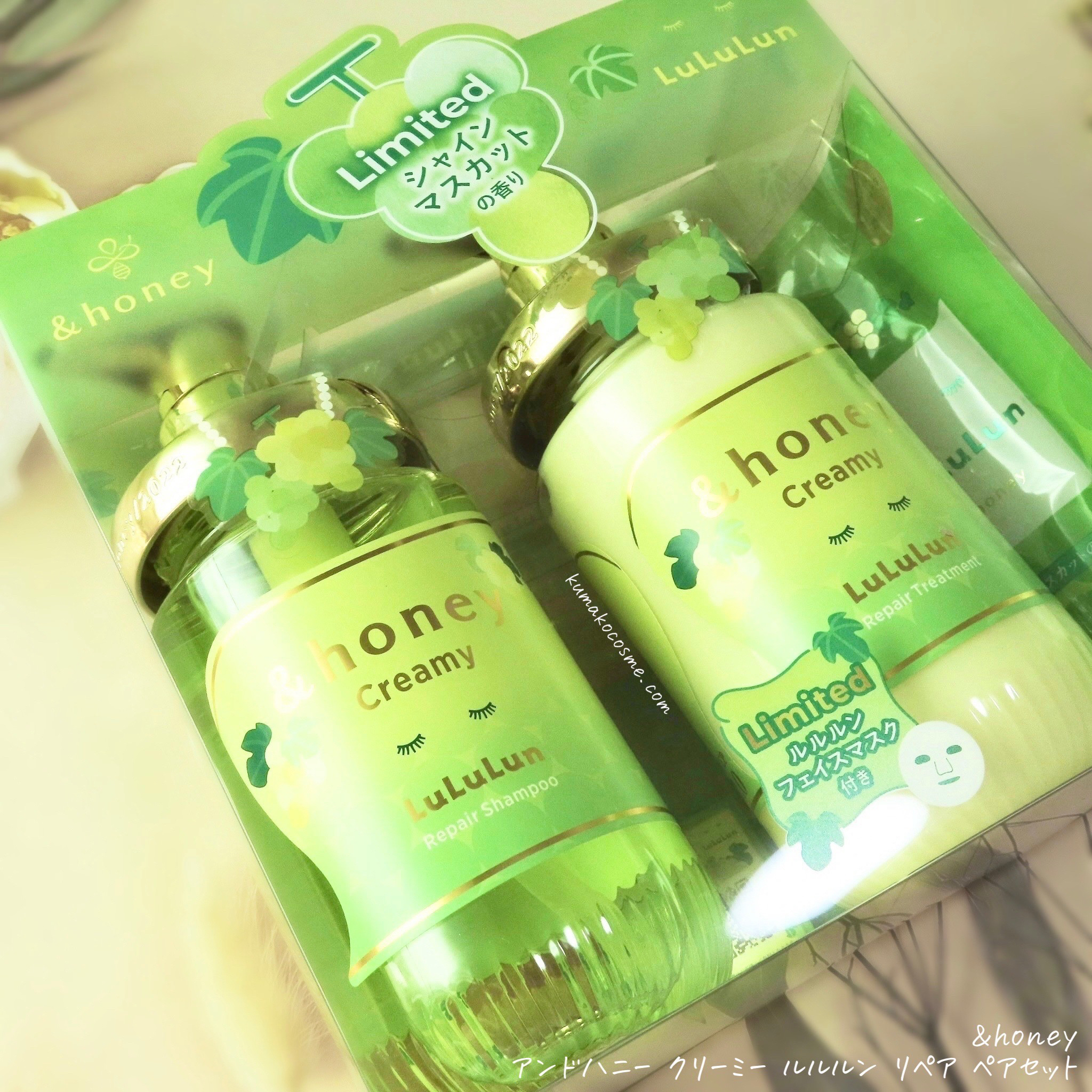 - &honey × 旅するルルルン限定コラボパッケージデザイン 【アンドハニー クリーミー ルルルン】 ①「旅するルルルン」長野・山梨のスペシャル成分 &honey×ルルルンコラボ処方。旅するルルルンシリーズ「長野・山梨ルルルン」で使用され ているブドウつるエキス+アンズ果実エキス+イザヨイバラエキスなどのハリツヤ成分を配合。 ハチミツ美容成分*1で髪ダメージを補修し、まとまりのある超しっとり髪へ導きます。 ②緑色に輝くシャインマスカットの香り 旅するルルルンとコラボした限定の「シャインマスカットの香り」。 まるで本物のような甘いマスカットの香りが爽やかに広がります。 *1ハチミツ(保湿)