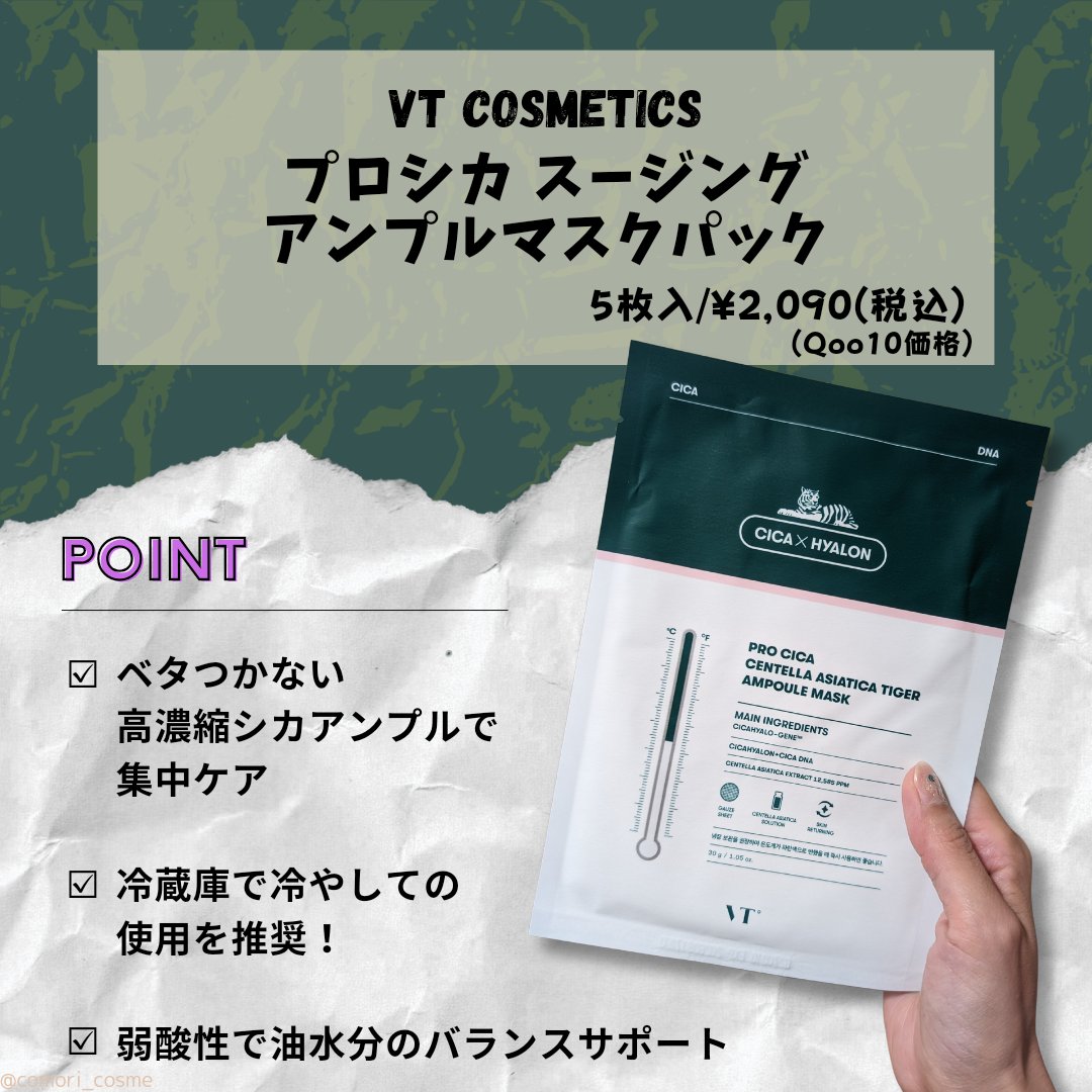 VTのプロシカセンテラアジアチカタイガーアンプルマスク!これ、今日で使い切ってしまったけどいやー、好きだったなー。最初、え、ガーゼ?ってびっくりした、このシート、結構密着感も良くてだんだんやみつきに。マスクの間に固いフィルムが入っているので畳...