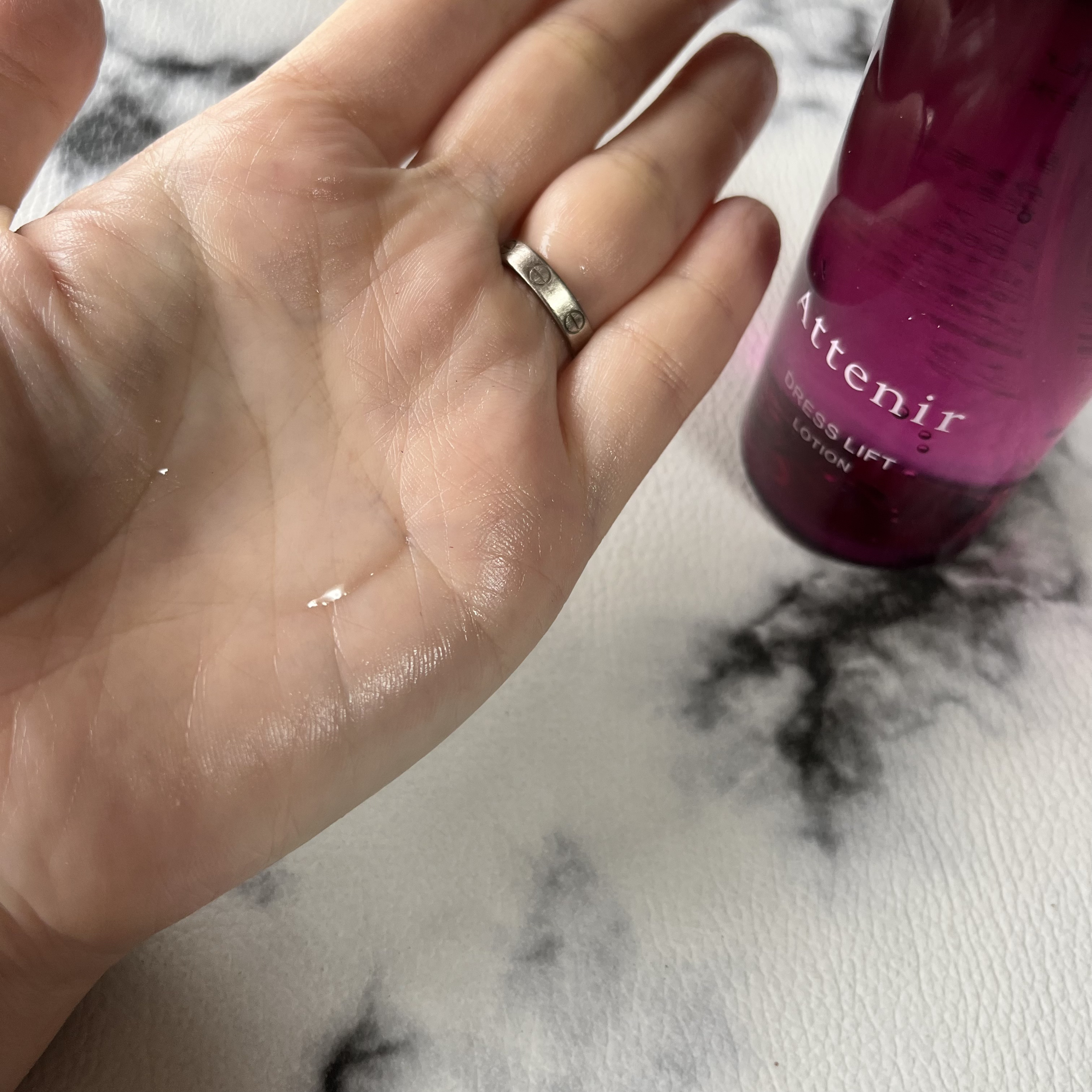テクスチャーは滑らかで、すーっとなじみます。 絶妙な濃さというのでしょうか。 軽くて物足りなすぎてももちろん嫌だし、重すぎでベタつくのも嫌。 そのちょうど中間の使い心地が私はとても気に入っています。 ゆっくりと香りを楽しんでお手入れが楽しくなる感じです。