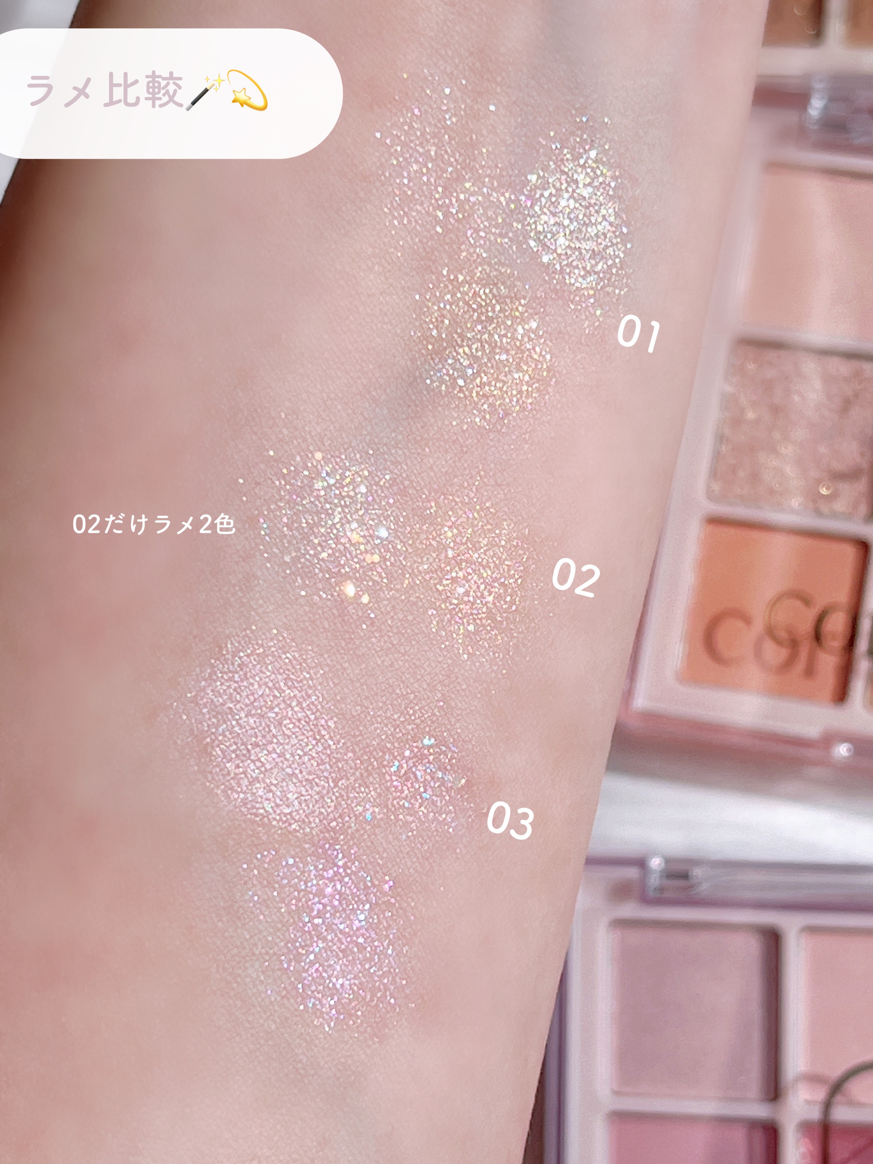 可愛いラベンダーやピンクカラーのアイシャドウ🩷💜 ふわっと発色で透明感!ラメも可愛いです│ ˙ᵕ˙ )꜆♡ ピンクのグリッターがめっちゃ好み🎀💕💓💗 大きめなので華やかメイクになります(*´༥`*)♡ 控えめラメもあるのでナチュラルなデイリーメイクにも使えます(՞ . .՞)