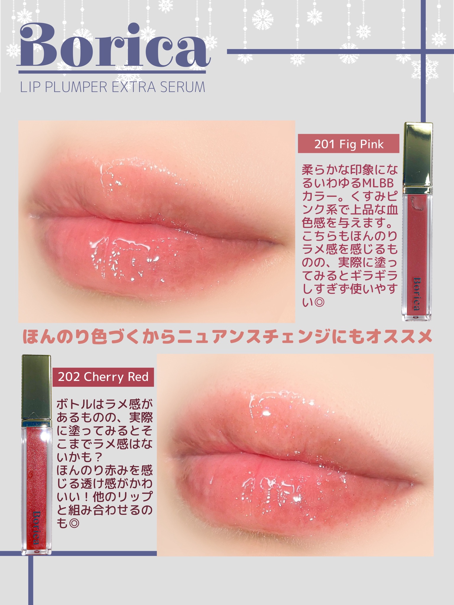 【プランパー】BoricaリッププランパーエクストラセラムBorica様からギフティングをいただきました。人気のリッププランパーエクストラセラム春の新色3本!10種類の美容成分配合で、カプサイシン不使用で刺激が苦手な私でも使いやすかったです。...
