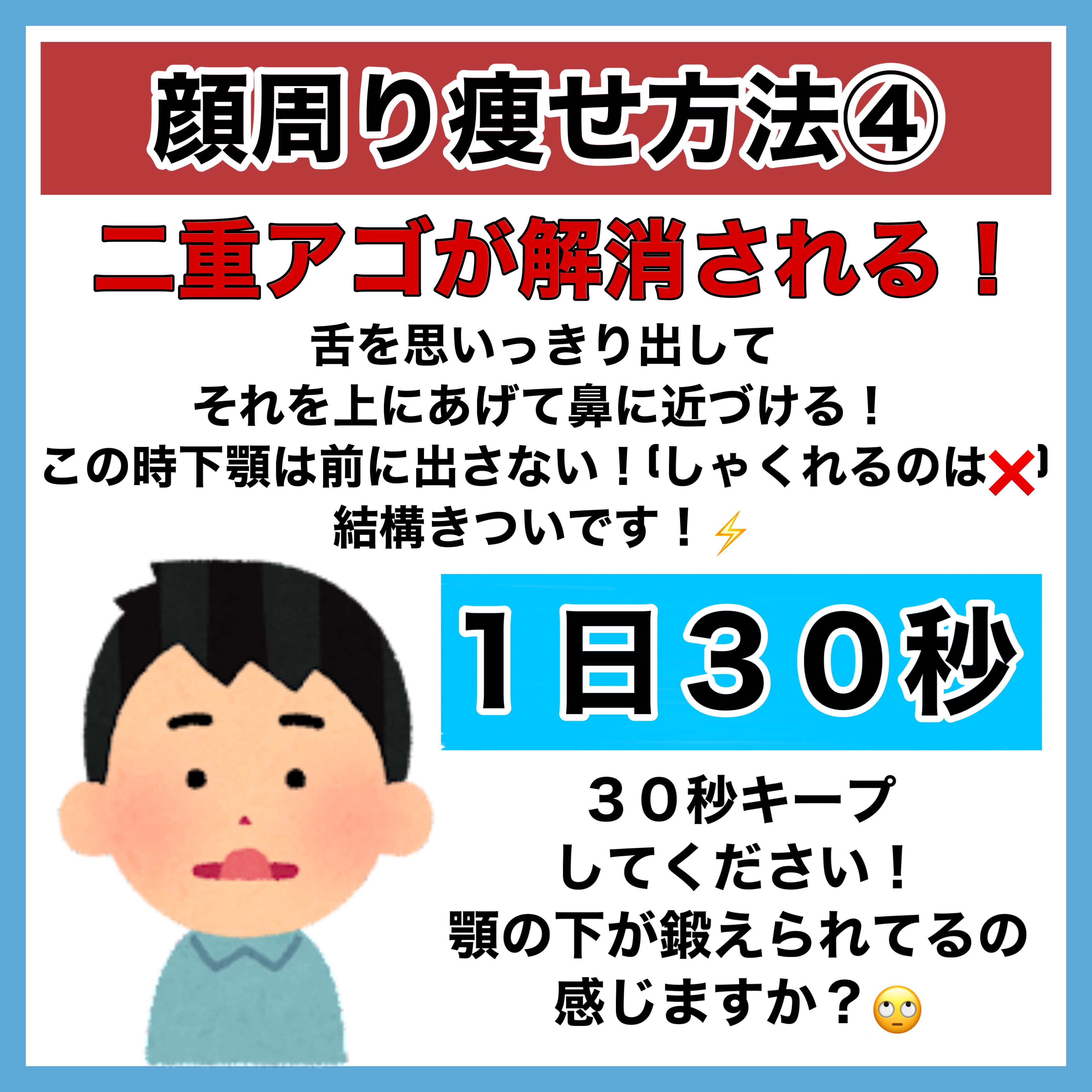 私が全力でオススメしたい、 顎下のお肉を落として、顔をシュッとさせる超簡単な筋トレをご紹介します!!! 用意する物もなく、何かしながらでも出来る筋トレです🙆🏻👌✨ 毎日継続すると、1週間以内に効果が出ると思います!! (見た目に出るのはもう少し時間がかかりますが、触るとスッキリしたのがほんっっに分かる!!!) 筋トレ❶ 筋トレ❷ すっごく効果があるので、皆さんもぜひ試してみてください!!
