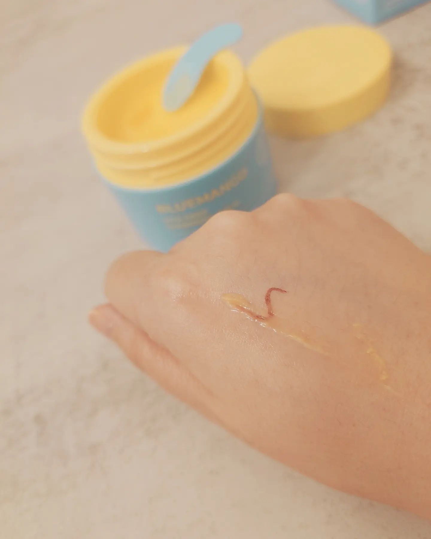 テクスチャーは酒粕❗ 酒粕をそのまま塗ってる?!って感じのテクスチャー。色も酒粕。 もたっとしたテクスチャーだから、塗り拡げてる時に垂れることもなし✨ 塗ってから5分〜10分くらい置いて流すんだけど、密着感があってしっとりしてるテクスチャーからその間も乾燥はし🎵 もたっとしるけど、思っていたより洗い流すの大変じゃなかった✨ 排水溝が詰まる心配もなさそう☺️ 私は湯船に使ってる間に塗ってるんだけど、いい感じ♡ 日本酒作る杜氏さんの手がキレイだっていう発想から作られたのに納得する使用感。