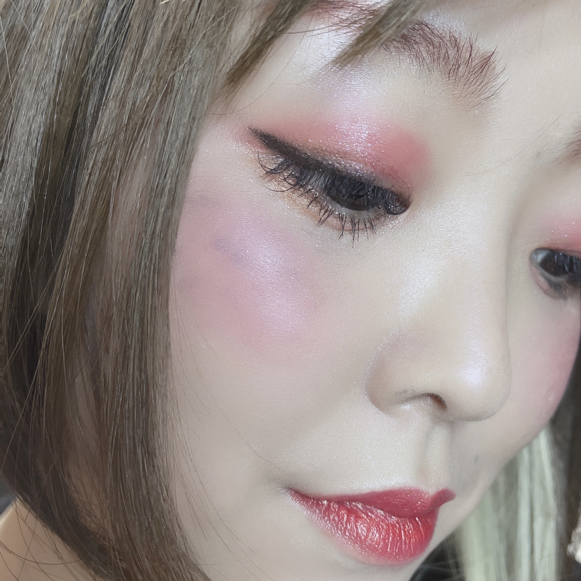 チークポップ持ってる人なら分かると思いますが、パール感は強め。 指で濃いめにつけてるので実際ブラシにとってつけるともっと薄めでモーヴカラー。 白っぽいパールなので見た目より明るめの発色。