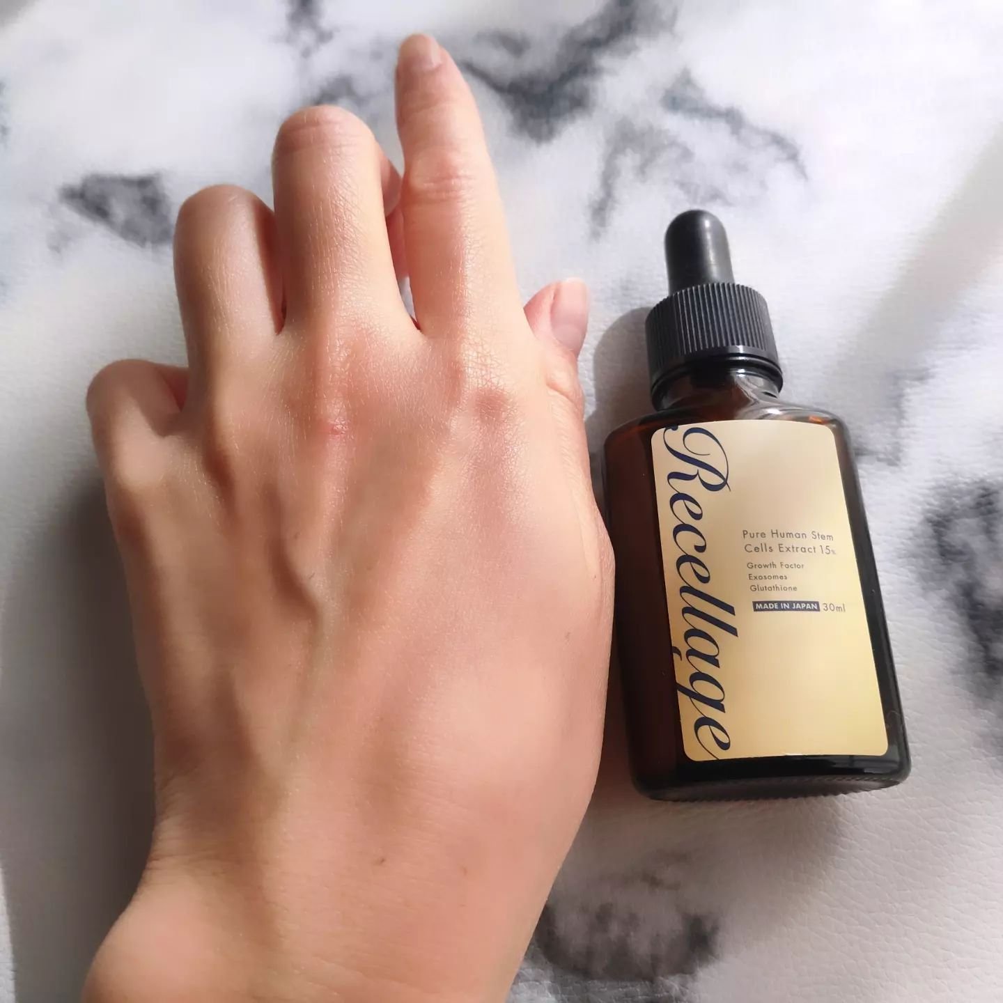高濃度ヒト幹細胞培養液を15%も贅沢に配合している美容液とのこと。 紫外線ダメージやシミ・くすみケアが期待できるというアスタキサンチンも配合されているのだとか。 シワやたるみを改善する効果が期待できる美容成分で、レチノールよりも刺激が少なく、肌にはりを与えてくれると言われている「バクチオール」も配合という贅沢さ。