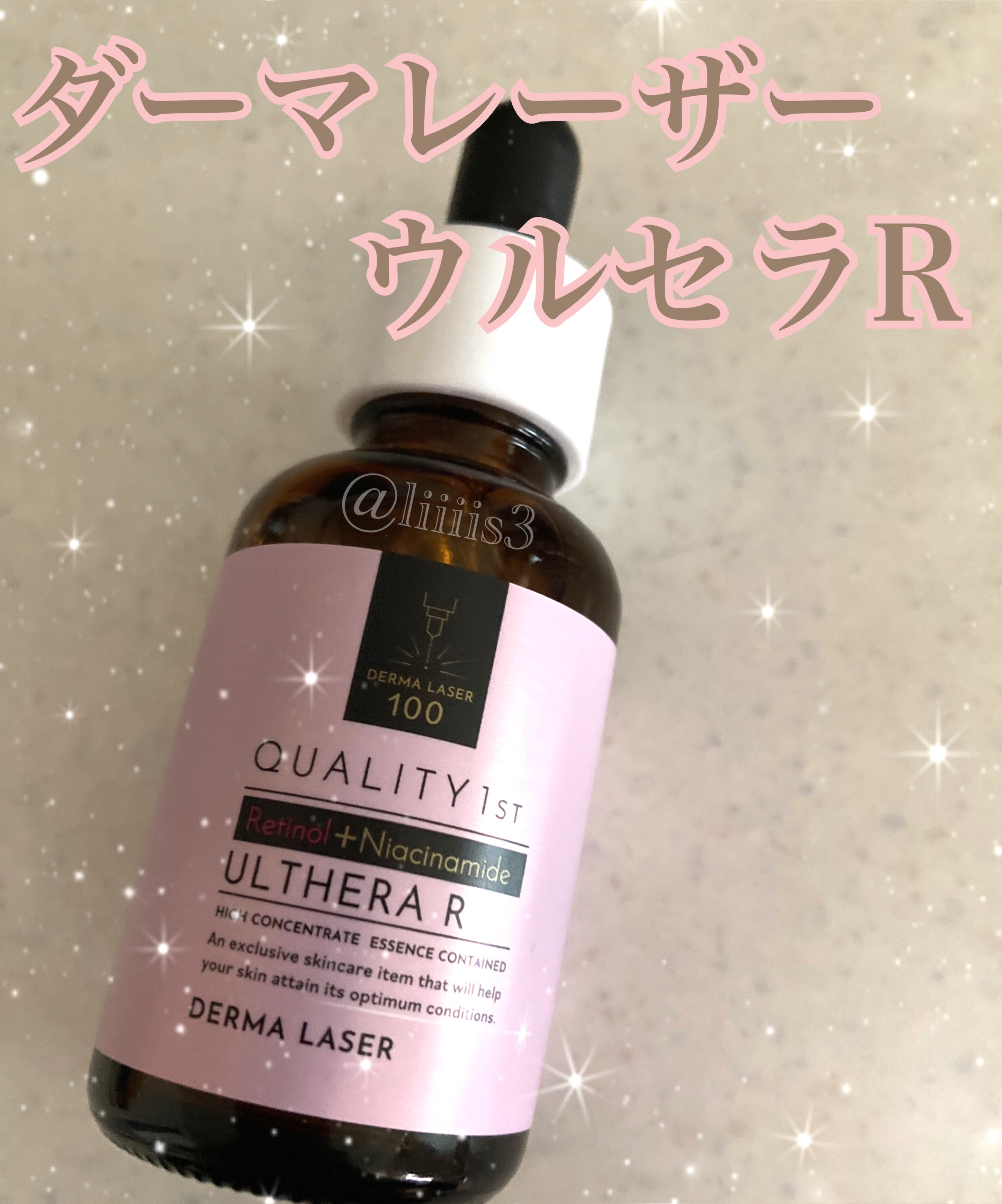 - <ダーマレーザー ウルセラR> ガラクトミセス培養液、ナイアシンアミド、BG、ジグリセリン、1,2-ヘキサンジオール、レチノール、パルミチン酸レチノール、トコフェロール、スクワラン、セラミドNP、ベタイン、ツボクサエキス、オウゴン根エキス、イタドリ根エキス、カンゾウ根エキス、チャ葉エキス、ローズマリー葉エキス、カミツレ花エキス、トリプロピレングリコール、水添レシチン、フィトステロールズ、PEG-60水添ヒマシ油、エチルヘキシルグリセリン、カルボマー、ヒドロキシエチルセルロース、セテアリルアルコール、ポリソルベート20、ポリソルベート60、水酸化Na、クエン酸、クエン酸Na、エチドロン酸、水、ピーナッツ油、ラベンダー油、レモン果皮油、ライム油、レモングラス油、エンピツビャクシン