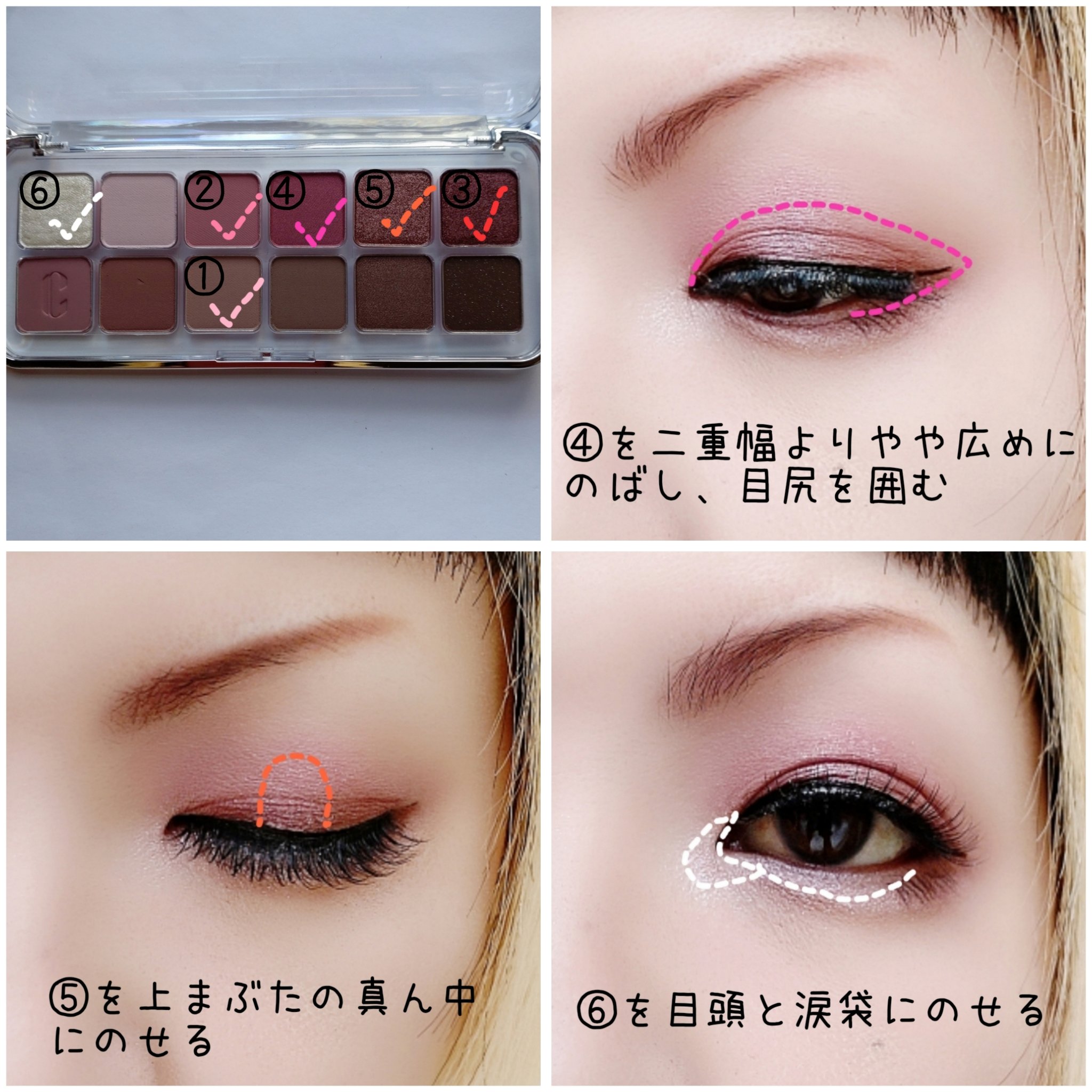 プチプラのクオリティじゃないっ!! 発売前からチェックしていたけれど、ここまで可愛いとは…😆 絶妙カラーで目もとのくすみを飛ばして*明るい印象に🩷 横割りグラデーションでメイクし、立体感をより出したかったので最後に1番左のカラーを上まぶたの真ん中と涙袋にのせています🙆 肌馴染みも良くて粉飛びも感じにくかったです💕 ブラウンの方も店頭に出てたら買おうかな💓