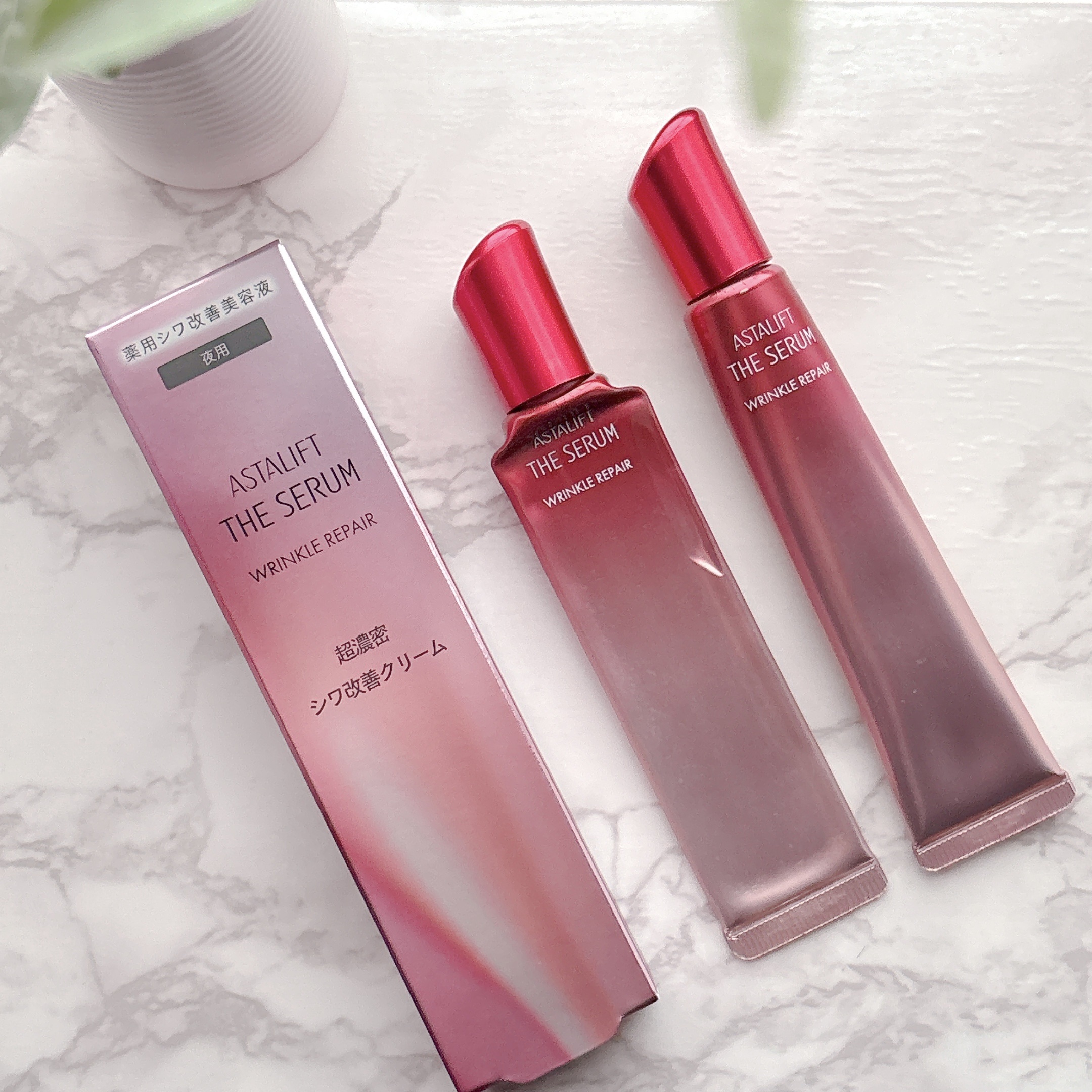 - 〈薬用シワ改善美容液〉 真皮への浸透を高めた独自のリポソーム単層リポソームを配合した薬用シワ改善美容液。 夜用:シワにピタッと密着するコクのある濃密クリームタイプ。 ・ビタミンB6配合真皮用浸透型リポソーム 医薬品研究で培った独自のリポソーム技術の知見を応用しビタミンB6を配合した真皮用浸透型リポソームを開発。ビタミンB6を真皮へより確実に届け、その効果を最大限に引き出します。 ・シワ改善・美白有効成分「ナイアシンアミド」 24時間、しっかりシワを改善する有効成分「ナイアシンアミド」配合。 ・一晩中、濃密なケアができる夜用クリーム まるでマスクのようにシワにピタッと密着するコクのある濃密クリーム。豊富な美容成分配合で、シワ改善をしっかりサポート。