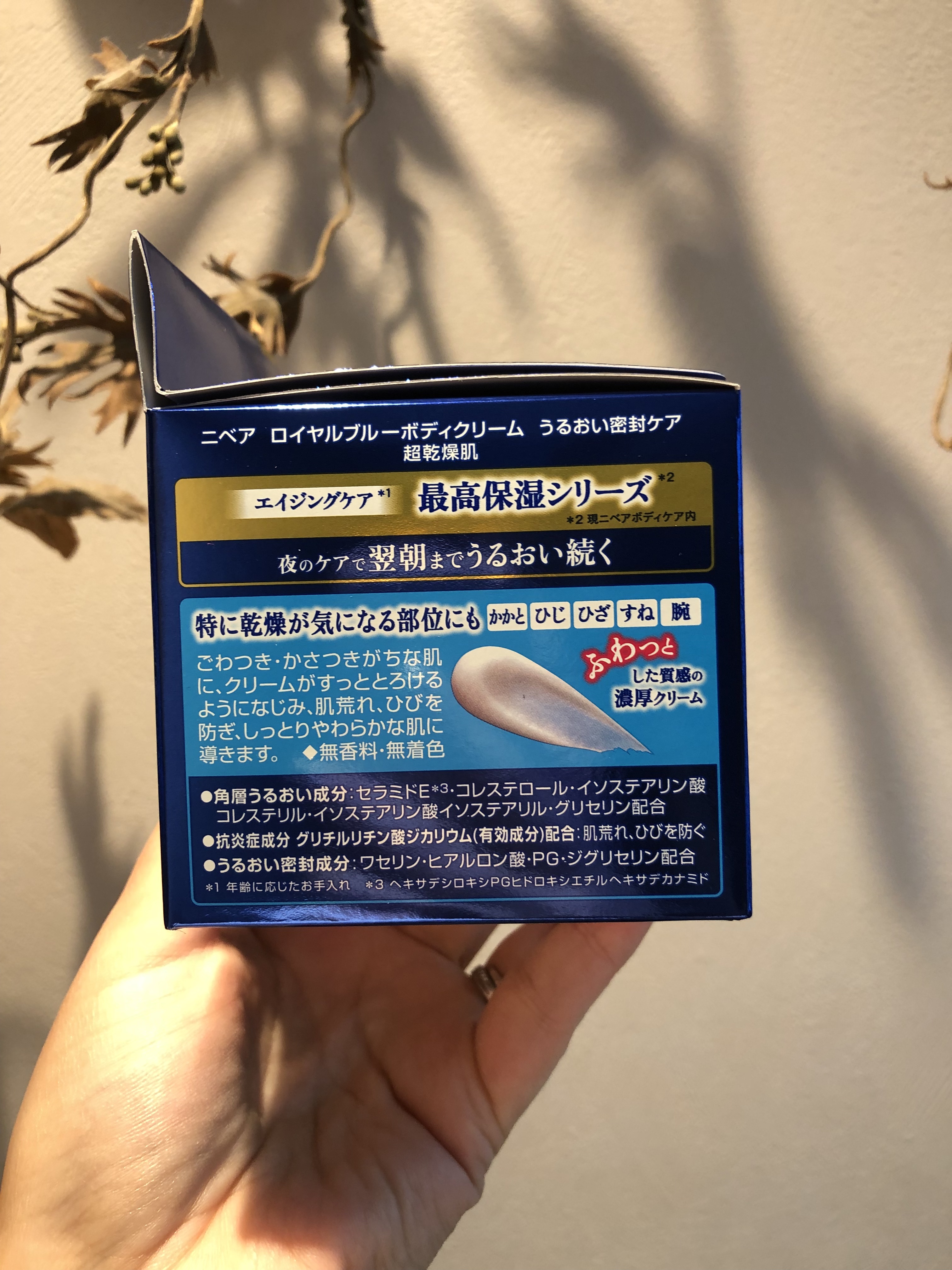 ニベアロイヤルブルーボディクリームうるおい密封ケア【医薬部外品】ニベア花王様から頂きました💕◎商品説明ふわっとした質感の濃厚クリームが、乾燥によりごわつき・かさつきがちな肌にすっととろけるようになじみ、肌荒れ、ひびを防ぎ、しっとりやわらかな肌...