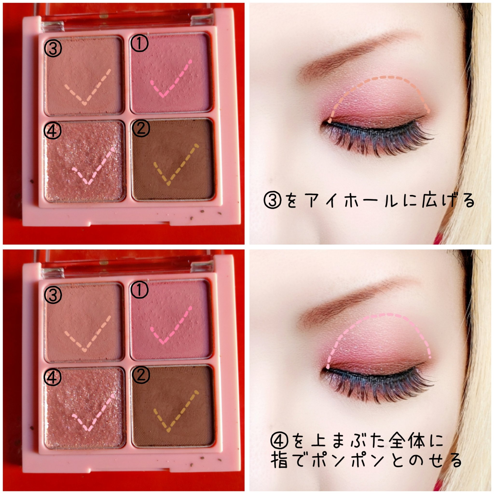 プチプラのクオリティじゃないっ!! 発売前からチェックしていたけれど、ここまで可愛いとは…😆 絶妙カラーで目もとのくすみを飛ばして*明るい印象に🩷 横割りグラデーションでメイクし、立体感をより出したかったので最後に1番左のカラーを上まぶたの真ん中と涙袋にのせています🙆 肌馴染みも良くて粉飛びも感じにくかったです💕 ブラウンの方も店頭に出てたら買おうかな💓