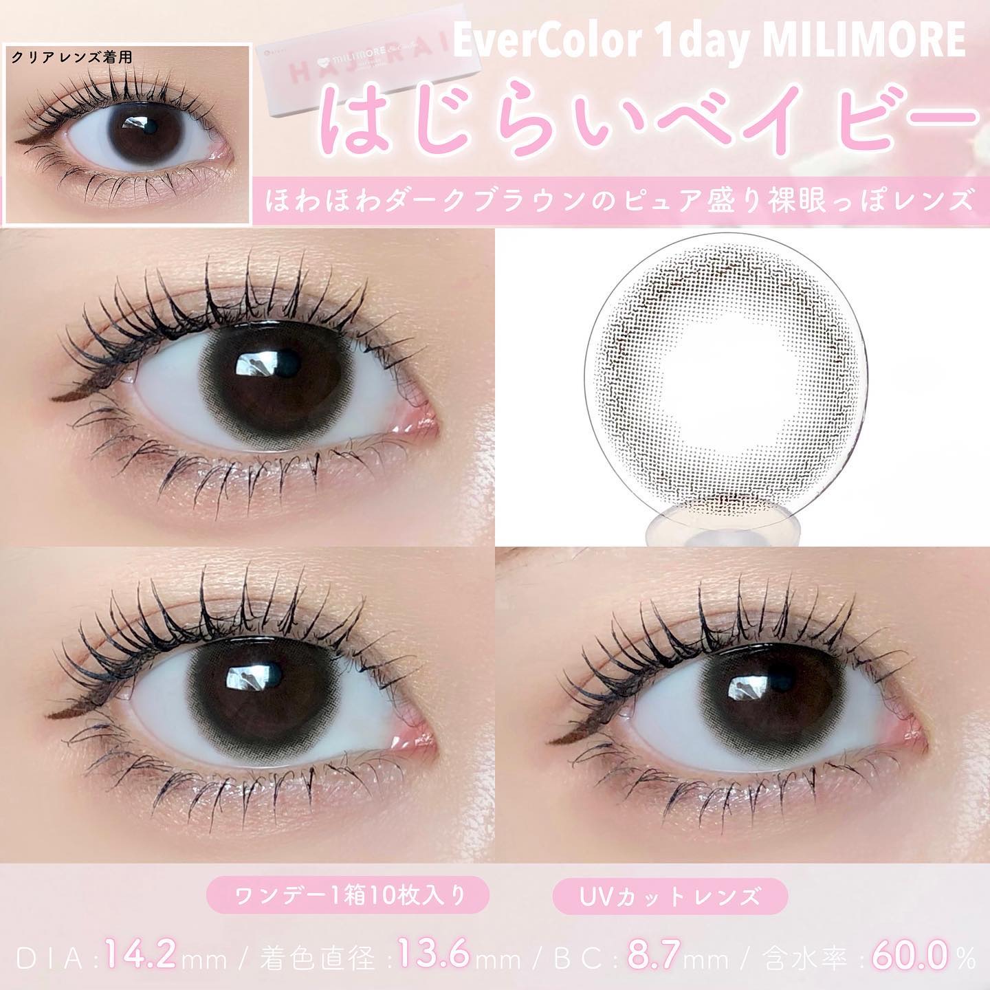 エバーカラーワンデイ🩷ミリモア4種比較🩷♡はじらいベイビー♡じらしてショコラ♡おねだりパール♡あまえんぼカカオ♡はじらいベイビー 着色直径13.6mmほわっと裸眼超えブラウン透明感あふれるダークブラウンで究極のピュア盛りおめめに💓♡じらしてシ...
