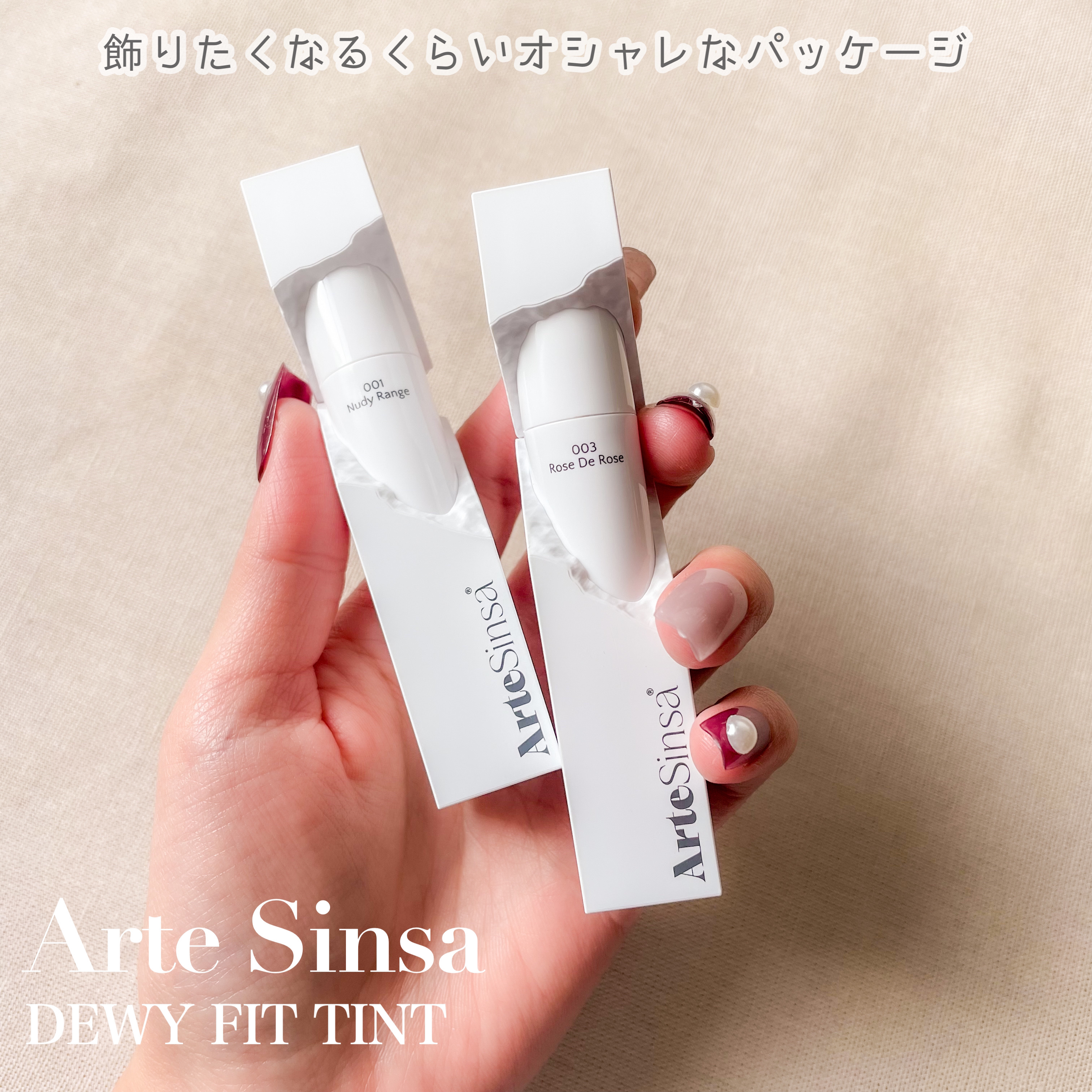 - 【Dewy Fit Tint 】は「彫刻ティント」で話題となったArteSinsanのシグネチャーティント 001/005カラーはリニューアルカラーで登場! 水分たっぷりのしっとりしたテクスチャーにウォータリーコーティングで鮮やかな発色に立体感を与えてくれます。 長持ちする着色力と高い保湿力を兼ね備え、唇に優しい使い心地で使用でき密着力も◎! まるでアーティスティック彫刻のようなティントです。