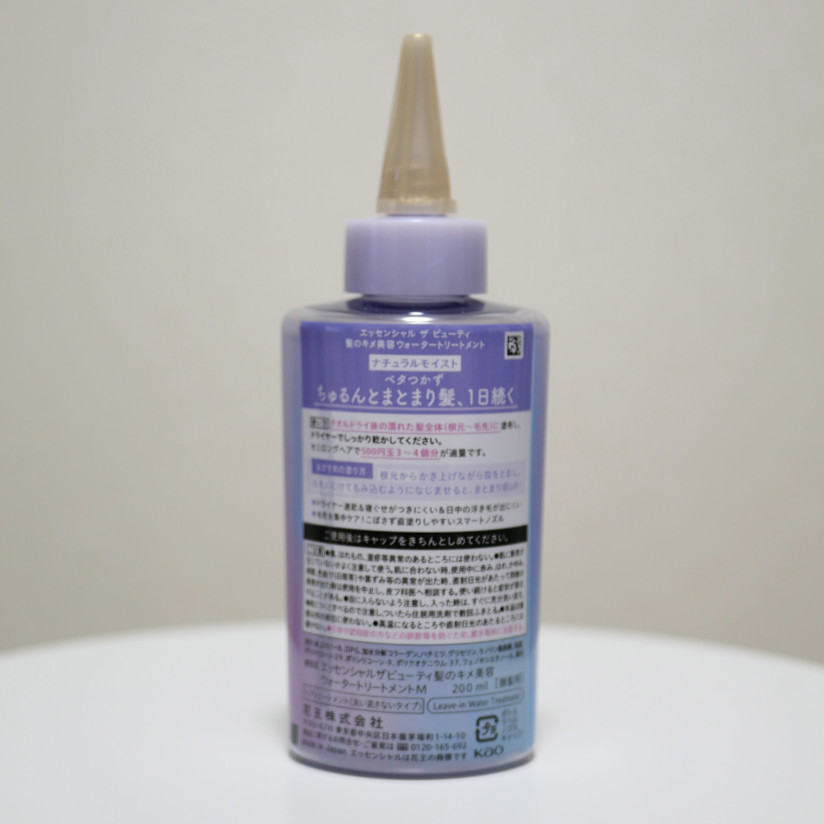 エッセンシャルプレミアムウォータートリートメントナチュラルモイスト口コミ評価が高くて気になってたエッセンシャルのウォータートリートメントを使ってみました!【使い方】①タオルドライ後、500円玉1個分ずつ手に取り髪全体によくなじませます。(セミ...