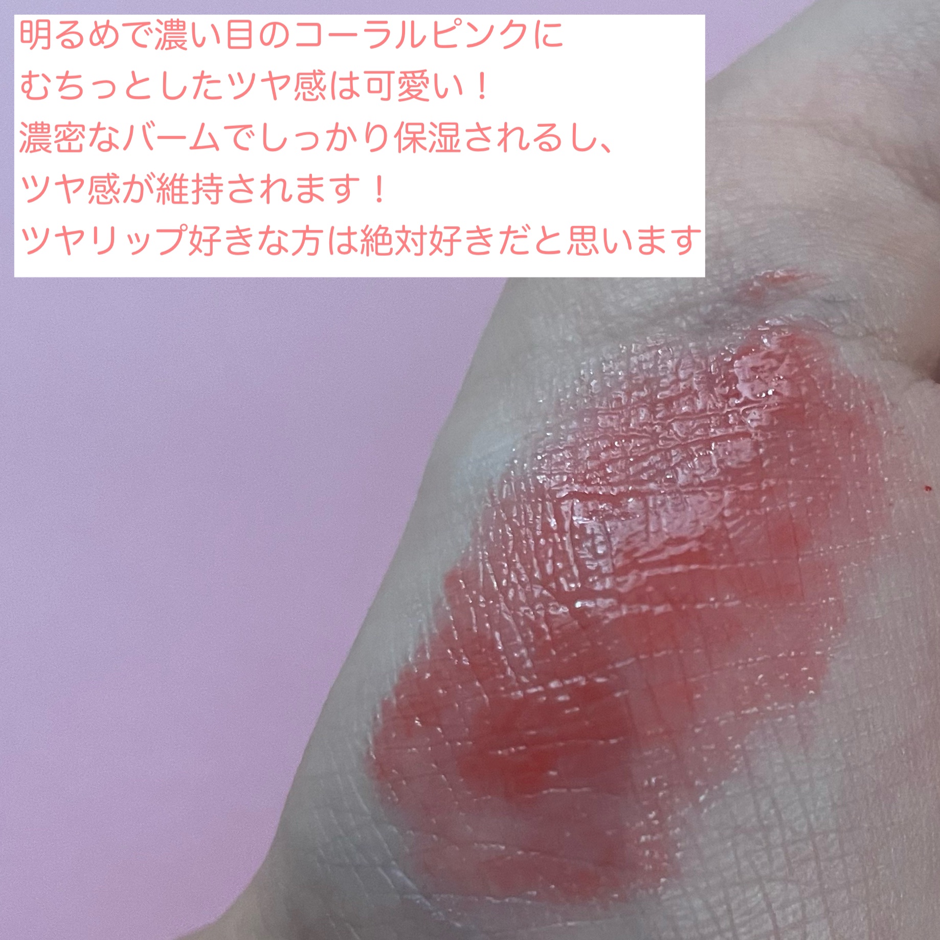 - もちっとした水膜で弾けそうなツヤリップ 1.軽い塗り心地のなめらかで透明な水爆弾ツヤ 2.塗った瞬間から唇を鮮やかに彩る多彩なカラーバーム 3.植物性保湿オイルでしっとりもっちり保湿バーム