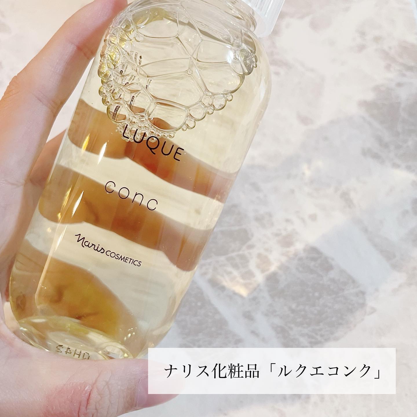 - ■毛穴、ザラつき、くすみ※1が気になる方に、不要な角質をふきとって、つるんとなめからかな肌へ。 ナリスのふきとり化粧水は、5年連続国内売上シェアNO.1※2 肌にとって余分な老化角質をおだやかに取り除き、素肌が持つ本来の美しさを引き出すルクエのコンク(ふきとり用化粧水)はナリスの80年以上続く研究開発によって誕生しました。 ●キレイのこたえは、ふきとり化粧水という選択。 植物保湿成分で古い角質をやさしくオフして、次に使うスキンケアアイテムのなじみをサポート。日々変化する肌をすこやかに整えます。毎日の“ふきとり習慣”で理想の肌に近づきましょう。 ●厳選した3つの植物の力で角層ケアをサポート。 ・柔らかくほぐして、取り除きやすくする「ヨクイニンエキス」※3 ・潤いを与え、健康的な角層へ導く「月見草エキス」※4 ・潤いを逃さず閉じ込める「白花豆エキス」※5 【使用方法】 1. 朝晩2回、洗顔後の後に。 2. コットンに8〜10滴程度(500円玉大)を含ませます。目安は、コットン裏側に染み込む程度。 3. できるだけ力を入れずに、やさしくなでるように顔全体を拭き取ります。 ※1古い角質による ※2ナリス化粧品 2015~2019年度 「ふきとり用化粧水」販売動向調査 TPCマーケティングリサーチ株式会社調べ※3 ハトムギ種子エキス(保湿成分) ※4 メマツヨイグサ種子エキス(保湿成分) ※5ベニバナインゲン種子エキス(保湿成分)