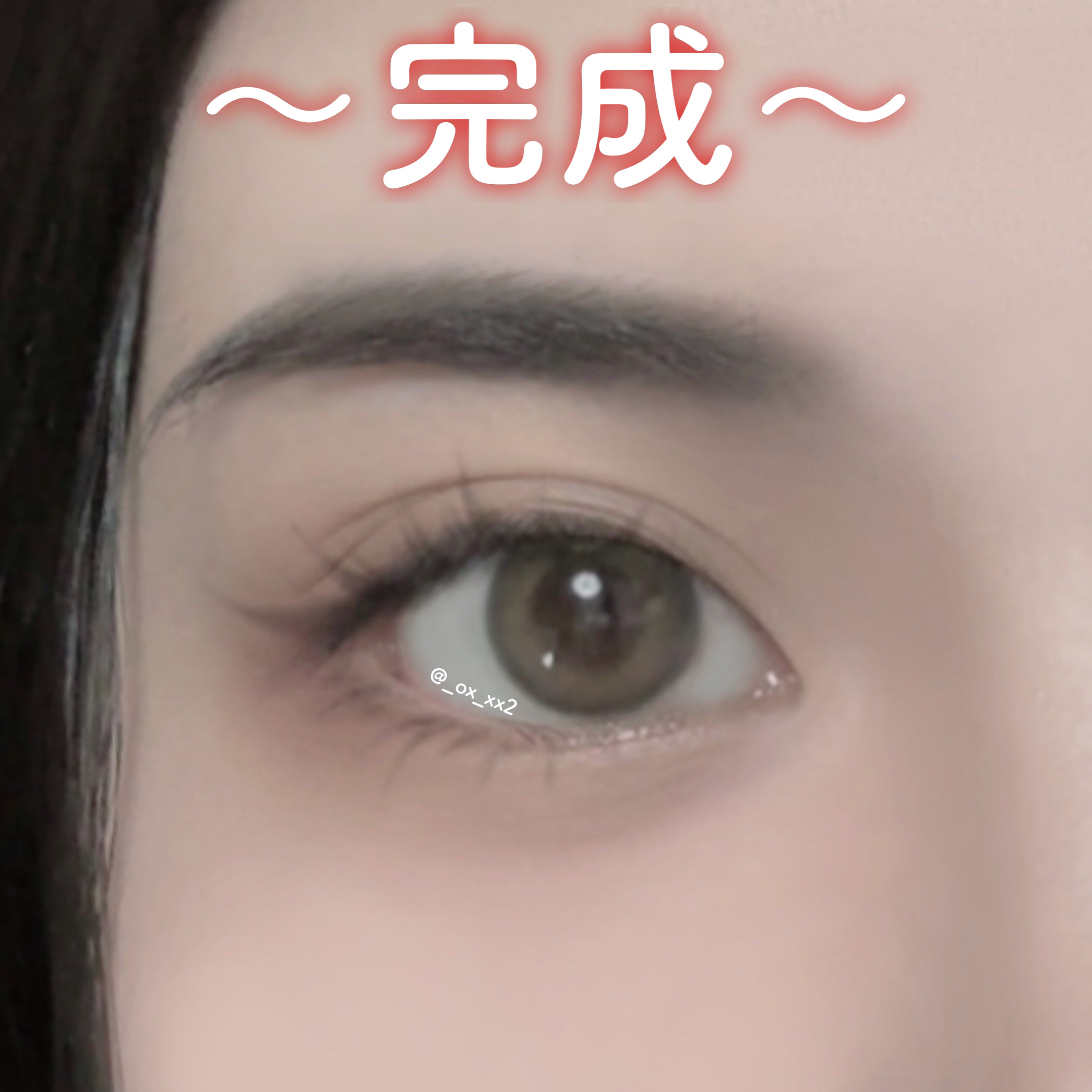 💗ベースカラーを全体にのせる💗 薄めのカラーがオススメです! 🍊二重幅にグラデーションになるようにのせる🍊 目の縦幅を出すためにグラデにします! 🍇アイライナーを長めに引く🍇 上目頭と上目尻に引く、目の横幅を出すためです!
