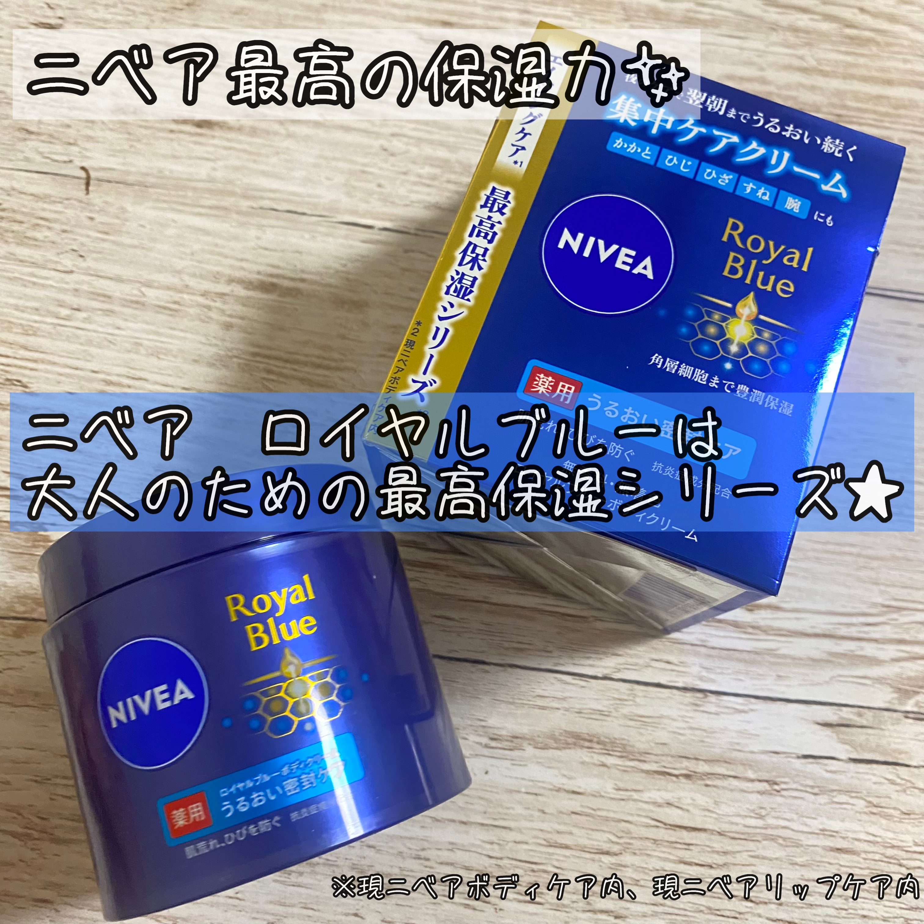 ニベアロイヤルブルーボディクリームうるおい密封ケア【医薬部外品】ニベア花王様から頂きました💕◎商品説明ふわっとした質感の濃厚クリームが、乾燥によりごわつき・かさつきがちな肌にすっととろけるようになじみ、肌荒れ、ひびを防ぎ、しっとりやわらかな肌...