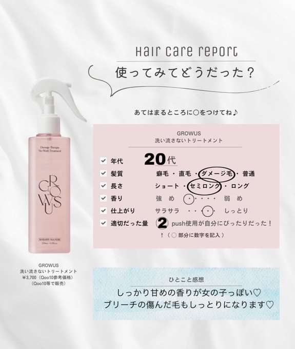 商品詳細情報GROWUS 洗い流さないトリートメント