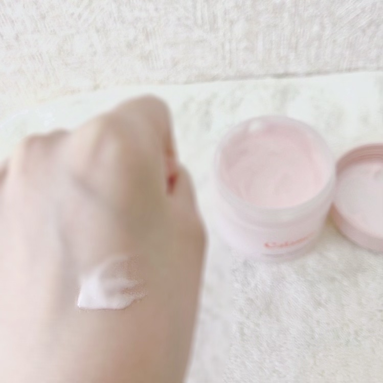 ハートの刻印があって可愛すぎて🥺!! ぷっくり立体的になってるの〜!! これはもうプリキュア🫶🏻 クリームチークだから、なめらかなテクスチャーで体温でとけるテクスチャー☁️ しっとりして乾燥を感じにくいのに、塗り広げるとサラッとした質感になってベタつきにくい! 07はライトピンクで白みがかってて透明感がすごい🪽 頬が赤くなりやすい私はこれを使うといい感じに赤みが抑えられてよかったです😽
