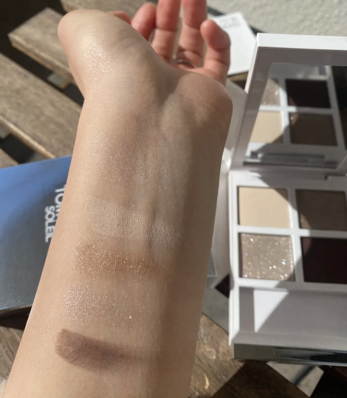 - お互いを引き立てあう4つのシェードでデザインされ、大胆でスモーキーな目元から、魅惑的な色使いまで、さまざまなルックを生み出します。シェードごとに異なるシアーから、シマー、マットなどの質感がもたらす美しいフィニッシュで、鮮やかな発色を叶えます。2本のカスタム アプリケーター付き。