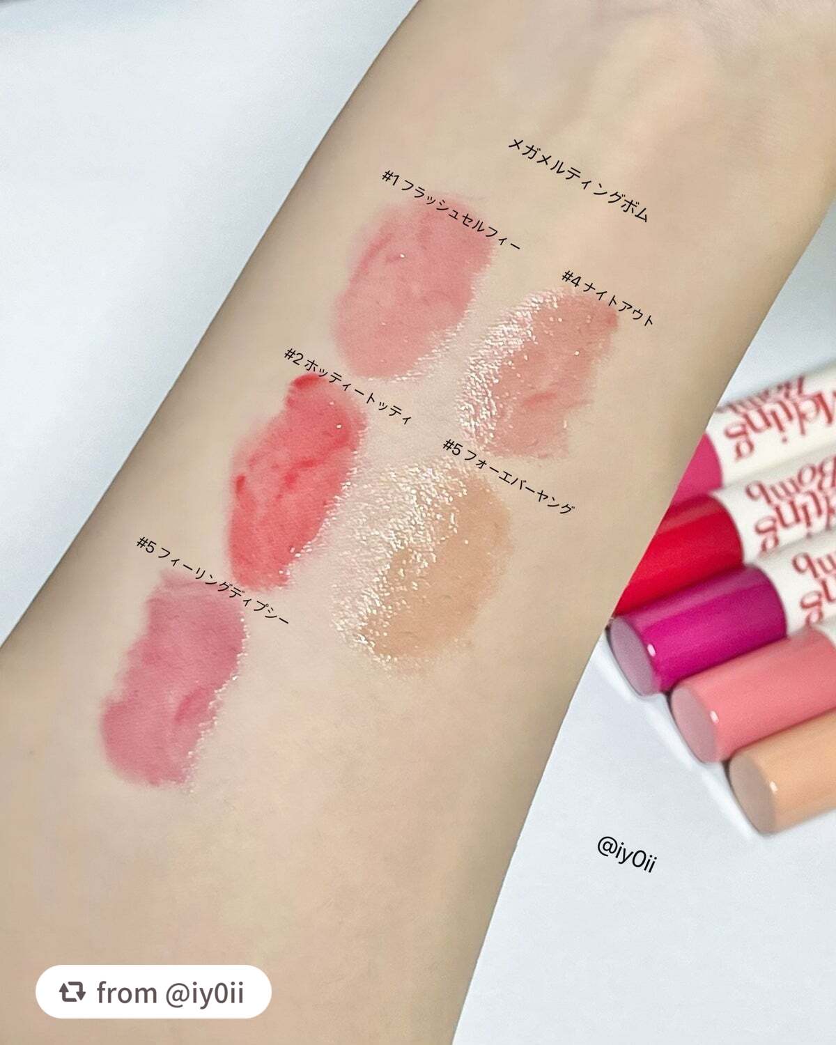 - 唇に触れた瞬間溶け込んできらめくメルティングボムフォーミュラが、フラッシュを放ったように眩しく輝くフラッシュ爆弾スティック。
