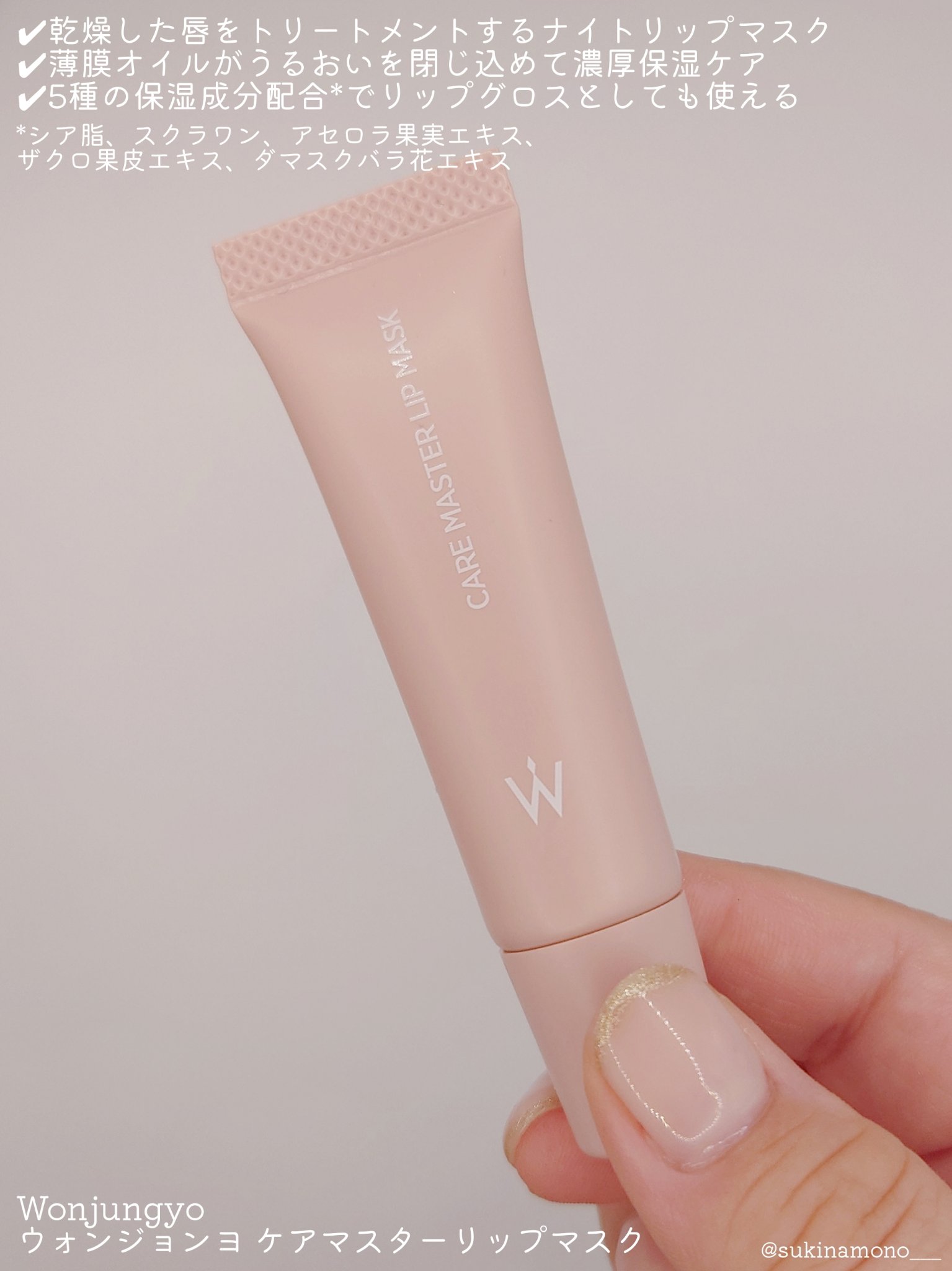 寝る前に塗るだけで、朝ぷるんってなるリップマスク💋Wonjungyoのケアマスターリップマスクは、5種類の保湿成分が入っていて、しっとりしてるのにベタつかないから使いやすいよ!リップの下地にも使えるのもうれしいポイント🫶本当に毎日使ってる、、...