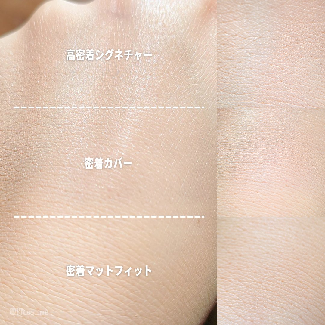 肌の赤み、くすみ、クマなどをカバーして生まれたてのお肌のような滑らかさで72時間密着※ 肌にピタッと密着してくれてカバー力はしっかりあるのに重たくなく軽い付け心地。 表面はさらっと中はしっとりとしたセミマットな仕上がりです