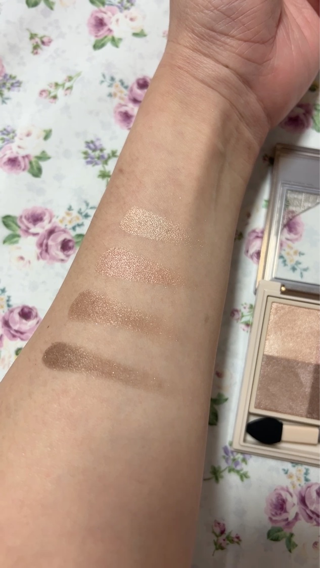 - ● しっとりほぐれるようなタッチで密着し、上品なツヤめきと透け感発色で目もとを彩る 4 色セットアイカラーです。 やさしいトーンの色味と繊細な輝きで、どこか儚げでアンニュイな印象に導きます。 ● レフ板のように光を美しく反射させるライトリフレクションパウダーを配合。 どの角度から見ても、繊細な輝きと濡れたようなツヤを演出します。 ● 透け感があり、軽いタッチでのび広がるクリアパウダーを配合。 色味を重ねても濁りのない透け感発色を叶えます。 ● とてもキメ細かなパウダーに厳選したオイルを組み合わせることで、しっとりなめらかなほぐれ感を実現。 薄膜にのび広がり、まぶたへ溶け込むように密着します。 ● スルスルとした軽い感触のオイルを配合。摩擦抵抗を減らすことで、まばたきや表情の変化によるヨレを防ぎます。 汗や皮脂にもくすみにくいため、時間が経ってもつけたての美しい発色が持続します。 ● まぶたに明るさをあたえ、後から重ねるアイカラーを美しく発色させる「スキンブライトカラー」(A)をセット。 光を味方につけてまぶたのくすみを飛ばし、明るくツヤめく目もとを叶えます。 ● 色ごとに仕切りがないため、1 色ずつはもちろん、パレット内で色を混ぜて塗布することもできます。 ● 美容液成分配合。乾燥しやすい目もとのうるおいをまもります。 ● 無香料