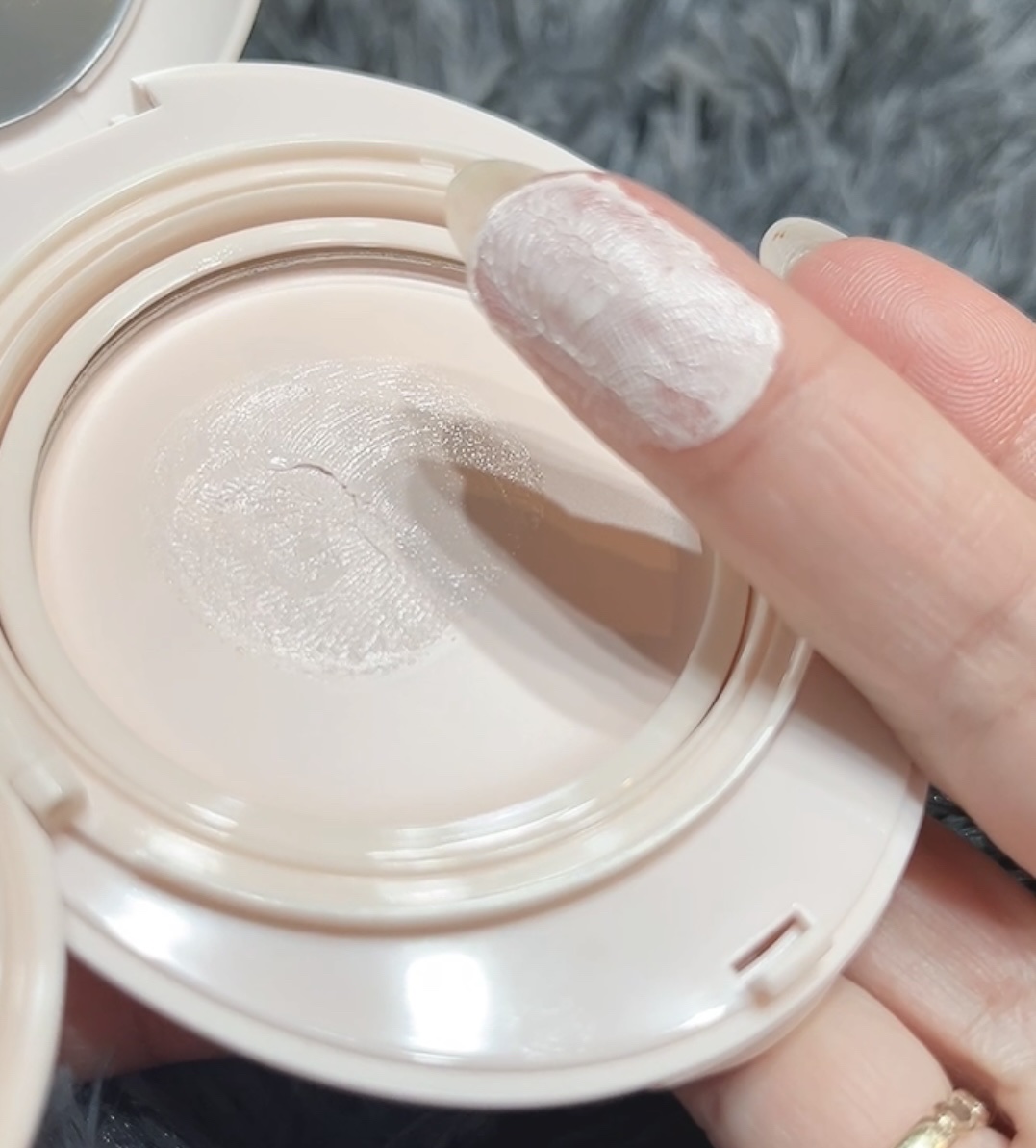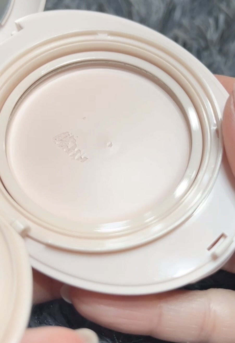 ミラーとしずく型のパフ付きで持ち運びにも便利。メイクの上から使えます😊 もち米由来の自然パウダーとカラーミングパウダーで紫外線で敏感になった肌の熱を落ち着かせてすべすべの仕上がりに。 ジュワッとみずみずしいテクスチャで肌に乗せるとややひんやり感あり。お肌もしっとり、明るく見えて小鼻の際の赤みもカバー✨