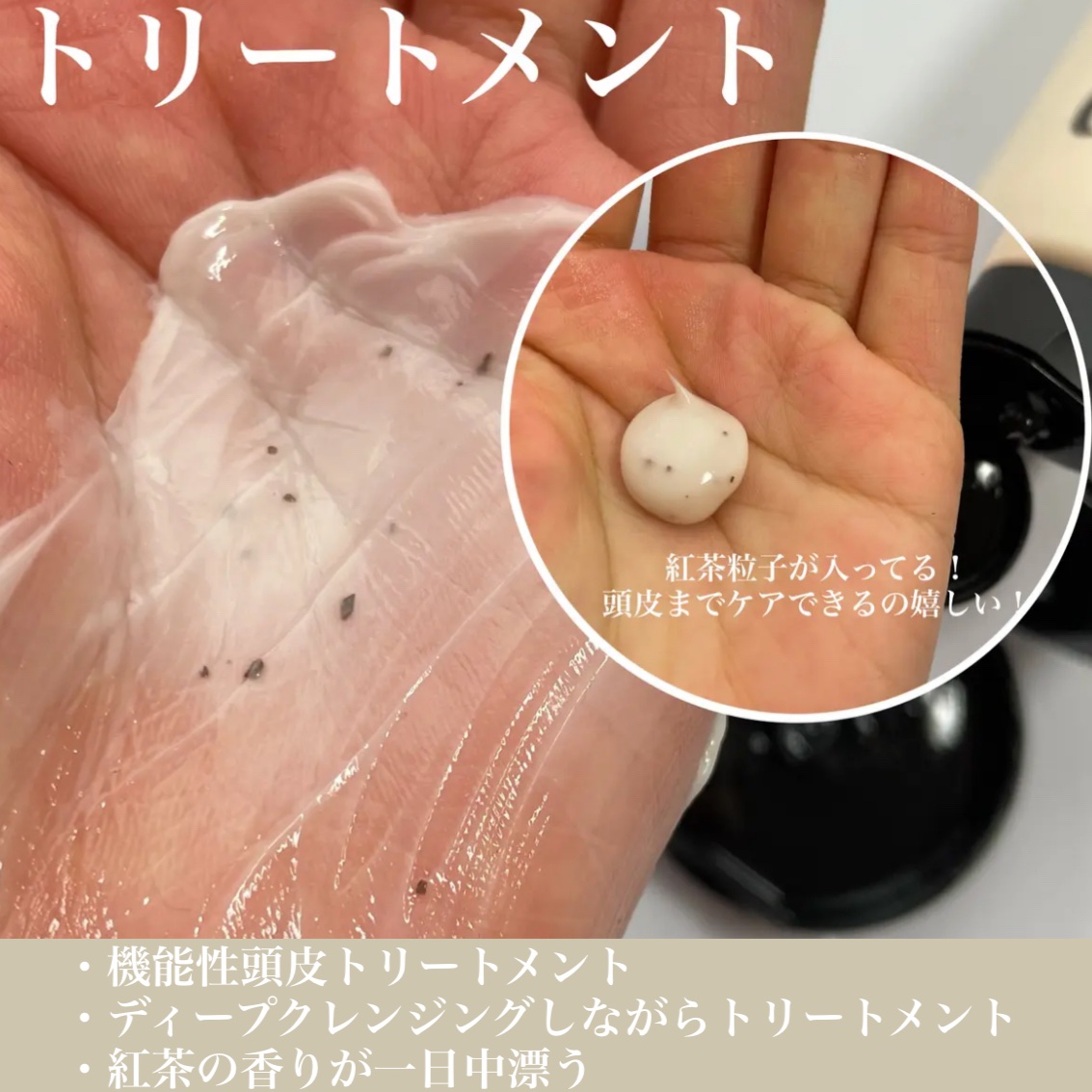 - ▪️イギリス産ブラックティーエキスをふんだんに使用(保湿成分) 柔らかいミルククリームタイプの高保湿処方で老廃物を吸着しディープクレンジングします。 健やかな頭皮と毛髪のためのケアに役立つ保湿クリームシャンプーです。 ▪️ブラックティー粒子を感じることができる高濃縮クリームタイプでスカルプケア、健やかな頭皮と毛髪へと導きます。 ペパーミントで清涼感を与える頭皮集中ケアトリートメントパック/マスク。