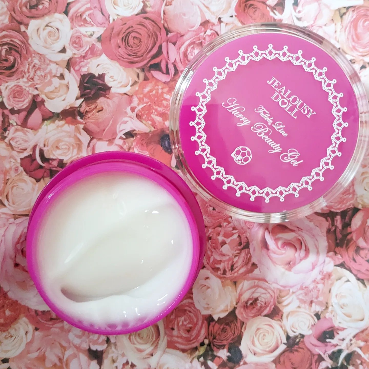 オールインワンって、やっぱりそれ1つでスキンケアが完了するのが最大の推しポイント! ハリービューティーゲルは、ぷるんっ!くりんっ!なゲルテクスチャーが本当に気持ちいい〜😆 とろーんとしてて、お肌にのせると体温でじんわり更にとろけていくんです。 スルスル〜っとあっという間に伸び広がるから、めちゃくちゃ時短にもなる🕰️ オールインワンは保湿力が物足りないこともあるんだけど、しっかりとしっとりしてて、カサカサ乾燥が気になるこれからの季節でも心強い🎶 乙女心くすぐるピンクのパッケージもかわいい🎀