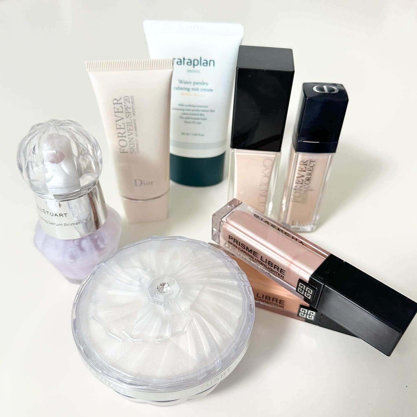 手に試した感じではベースのブルーは弱く、ラメ自体がブルーで可愛すぎる…! BAさんはパウダーアイシャドウのベースにもおすすめと教えてくれたので、 今日はこちらをベースにピンクブラウン系の アイシャドウを使ってメイクしてみたよ🫶🏻 肌に伸ばすとすぐにサラサラになるから ベタベタが残ったりしないし、 パウダーアイシャドウの上に重ねてもヨレない◎