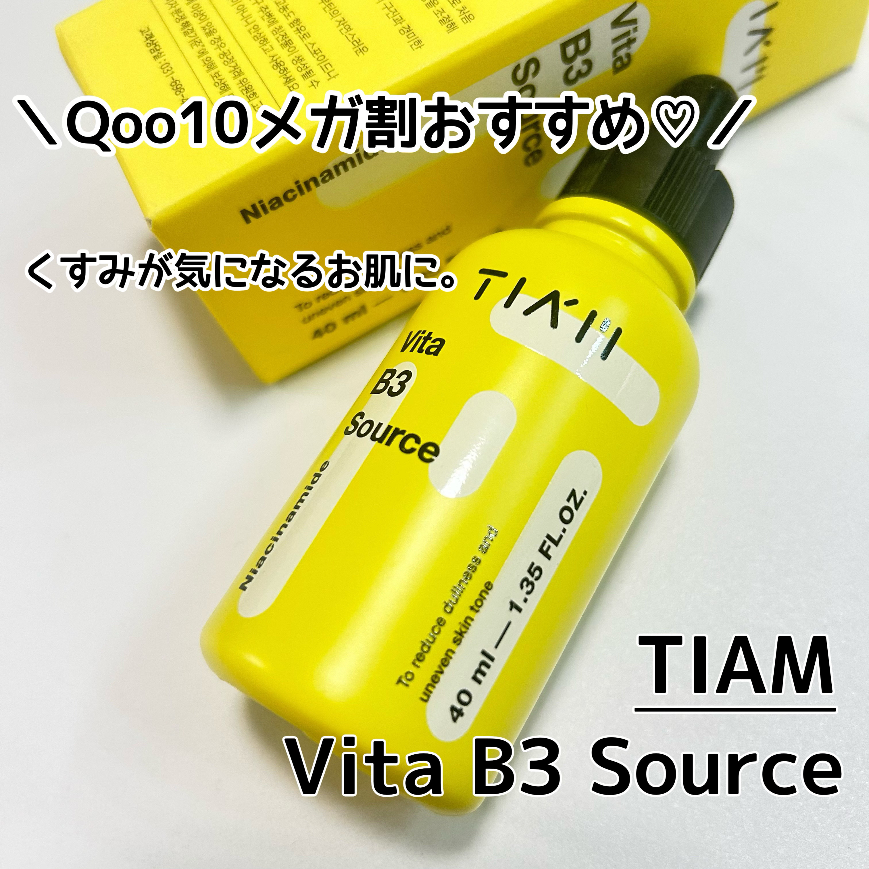 シミ、くすみ肌にもってこいな美容液で、ブライトニング代表格なナイアシンアミドを10%も配合してて、ほかにも、アルブチン*、炎症などを抑えてくれるアラントインが配合されてるよ! とろっとしたテクスチャーで、ベタつきも気にならなかった!! ビタミン系の美容液って価格が、、、って思っちゃうけどこのセラム、お手頃価格なのがいいよね! 朝晩どちらにも使えて、敏感肌さんにも使えるのもうれしいね!! もうすぐメガ割始まるし、チェックしてみてね!