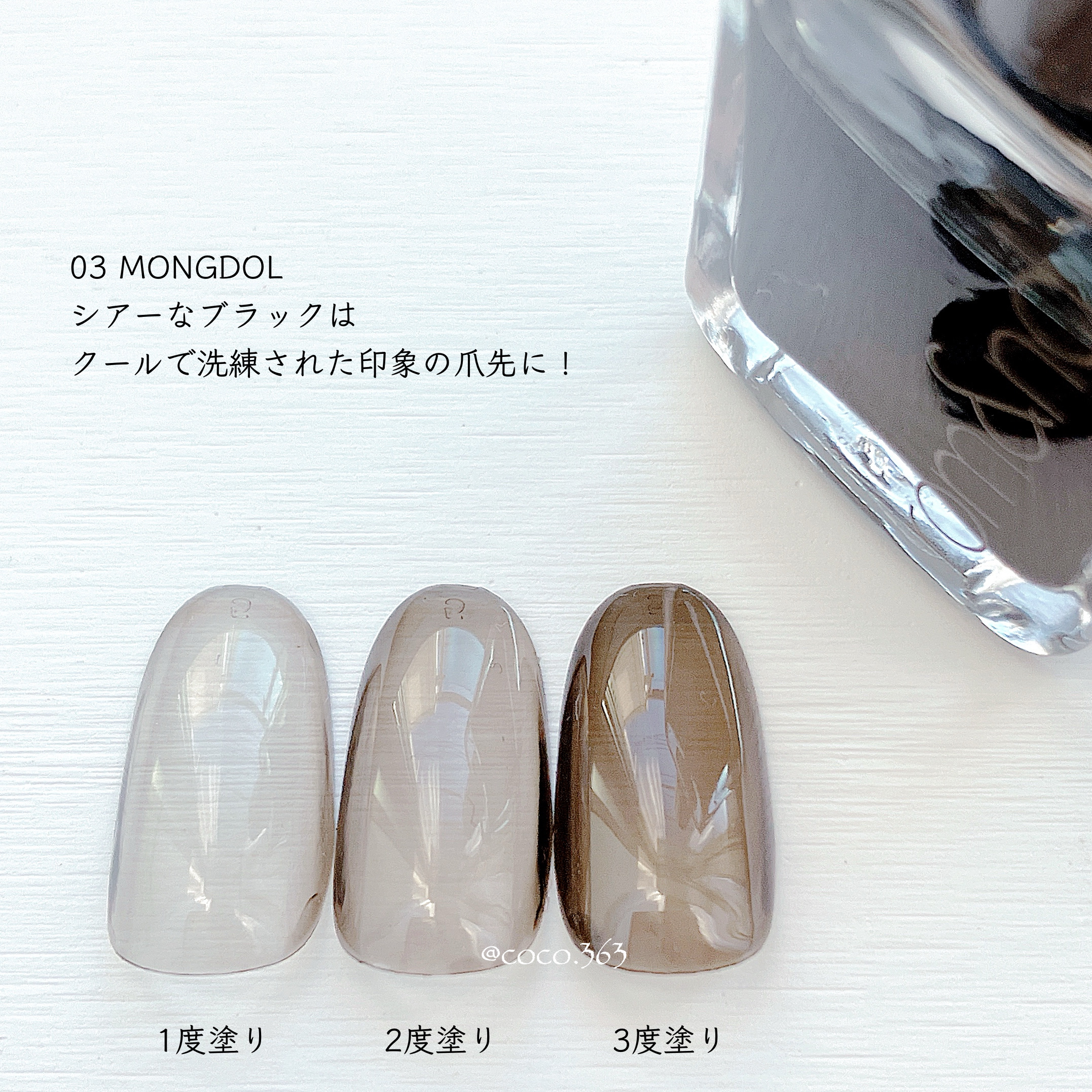 手描きハロウィンネイルに挑戦(`・ω・´)キリッ コウモリ、蜘蛛の巣、カボチャ、おばけとハロウィン欲張りデザインです🦇🕸🎃👻 03 MONGDOLは、便利なシアーブラック。他のカラーに重ねるとスモーキーカラーに変身。 007 ホワイト系は、ひとつは持っておくと便利なザ・ホワイト。
