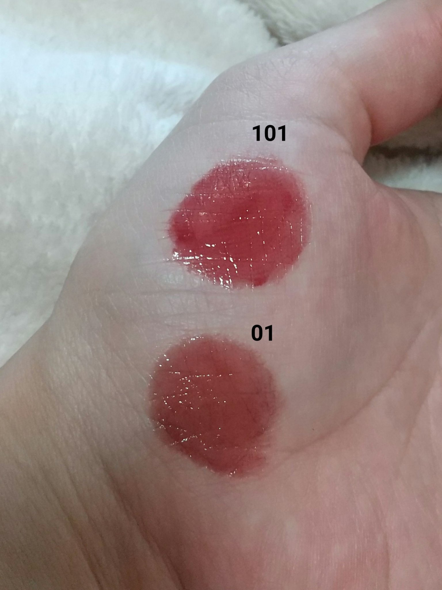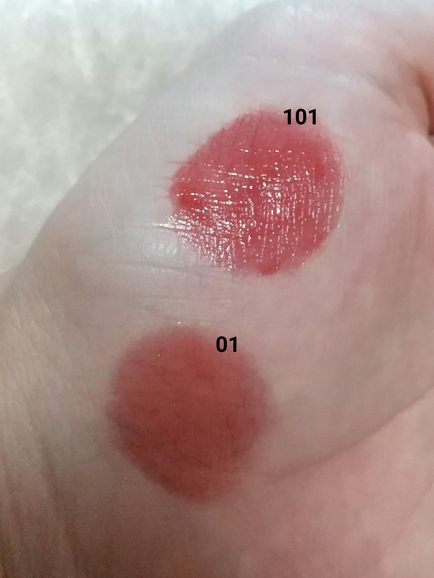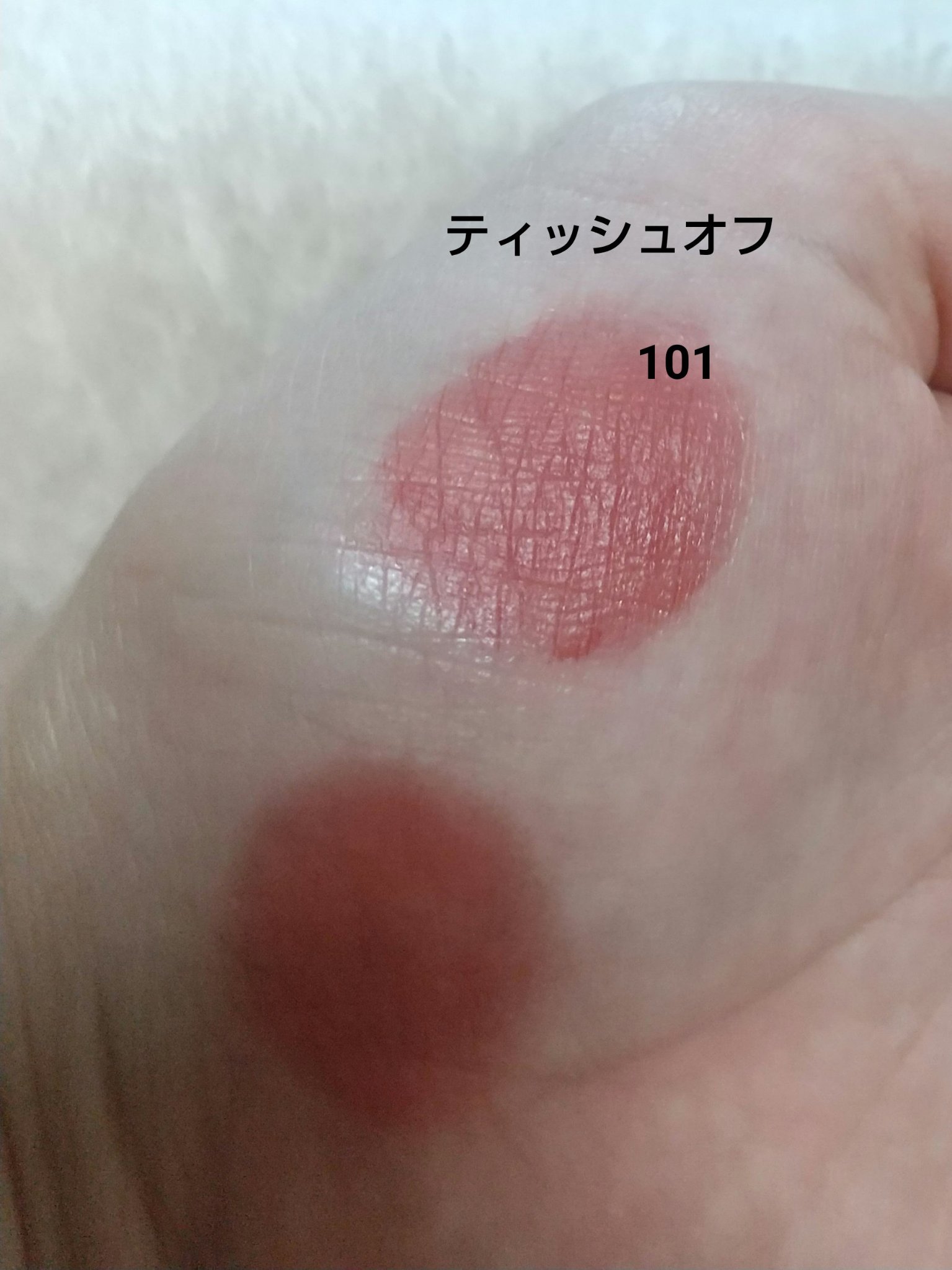 左上、左下、真ん中上、真ん中下、右上、右下という順番でスウォッチしてみました。 出してみると商品の写真より肌にのせたほうがくすみが出るかな✨という印象です😌 伸ばしやすくて指でも筆でもつけやすいです☺️💕 とっても可愛いカラーなのでオススメです💠